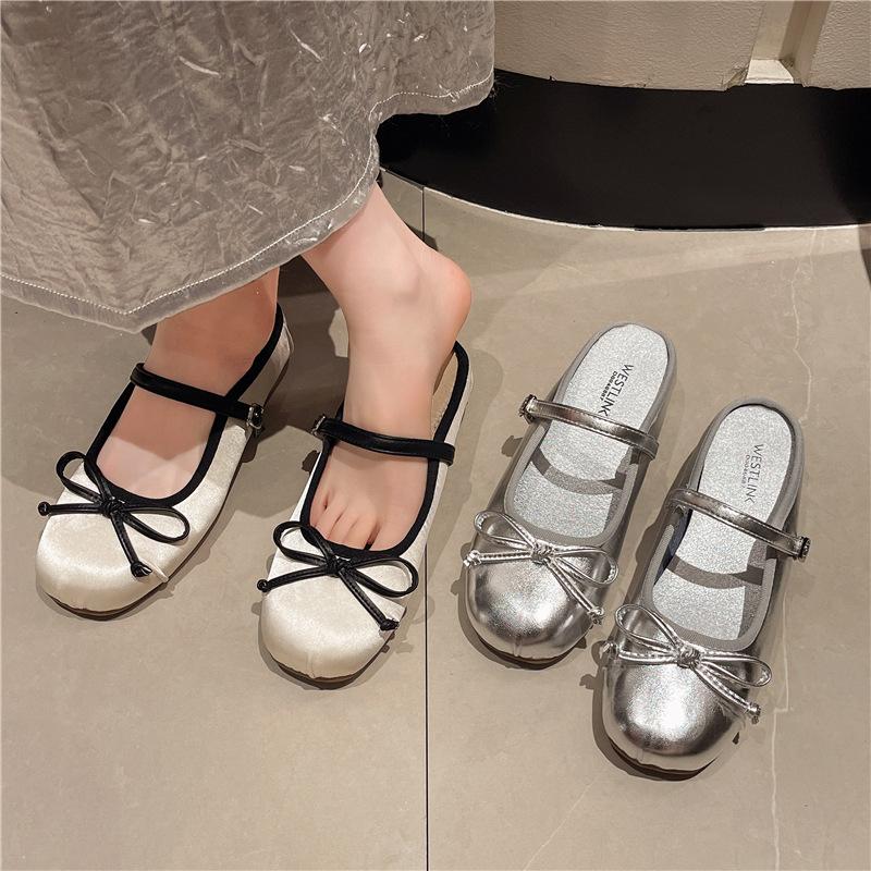 Тапочки-полушапки с бантом и внутренним увеличением, женская верхняя одежда весна-лето 2025, новые туфли с атласной лицевой стороной