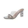 2025 новые заостренные стразы с бантом из прозрачного мешка на голове босоножки носить толстый каблук полутапочки летняя женская обувь