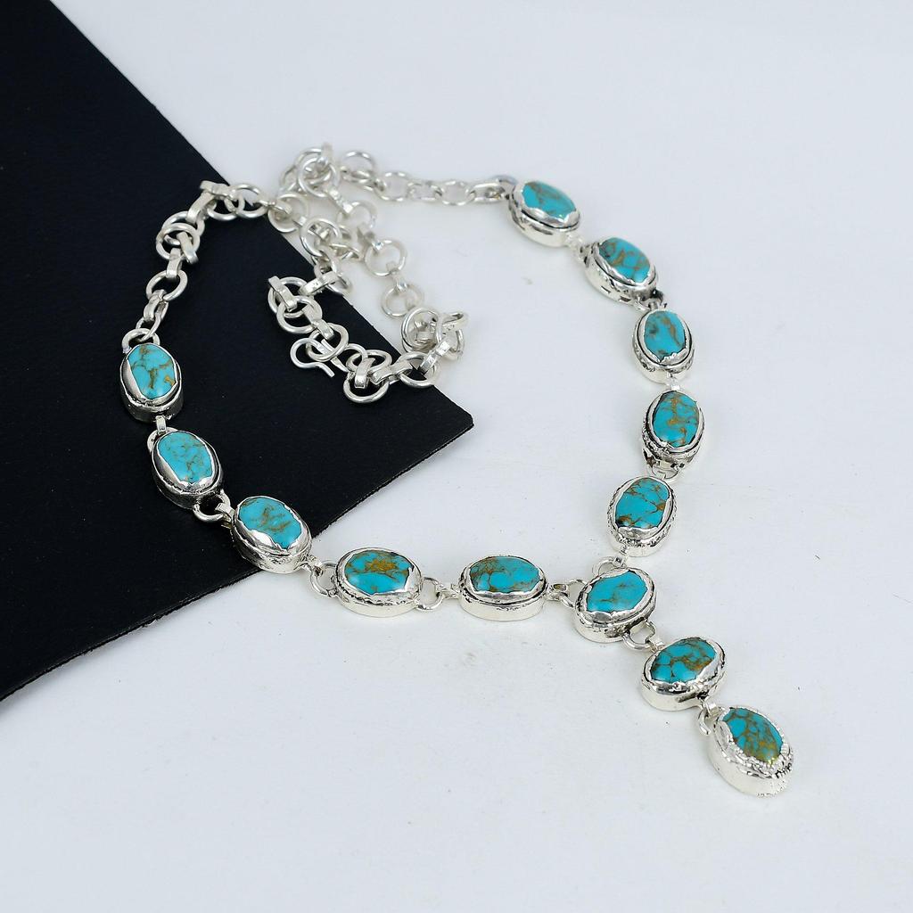 Удивительное бирюзовое ожерелье ручной работы из стерлингового серебра 925 пробы, бирюзовое серебряное ожерелье для жены, ожерелье унисекс, подарок на вату