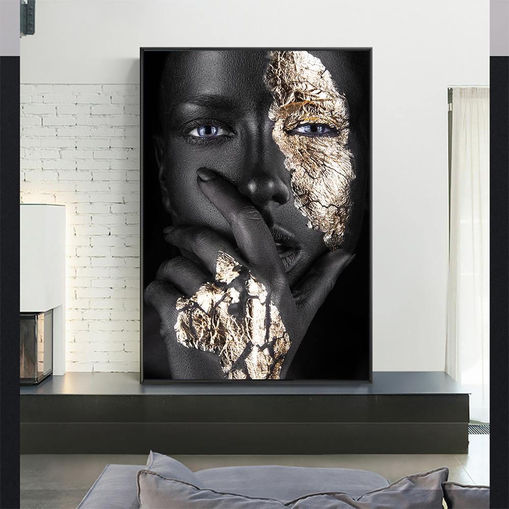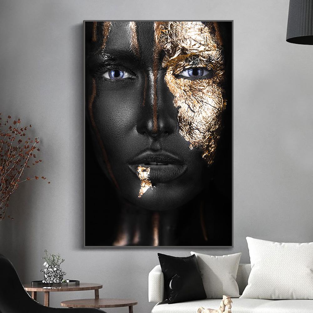 Африканская женщина холст постер золотая фольга маска ювелирные изделия декоративная живопись гостиная настенная живопись для современного домашнего декора живопись