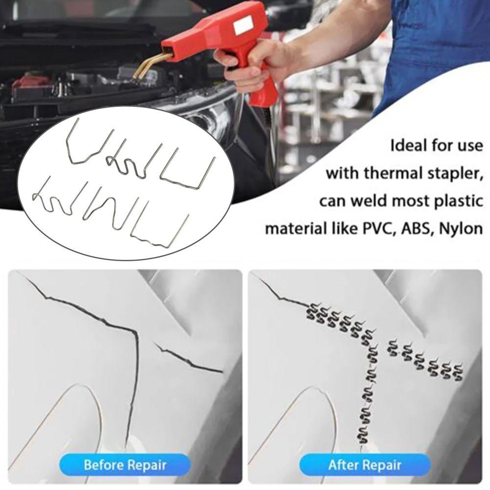 【Прочный материал вольфрамовой стали】:Пластиковые сварочные скобы изготовлены из высококачественных вольфрамовых стальных материалов, которые долговечны, имеют хорошую твердость и ударную вязкость и просты в обработке.. Обычно используется с горячим степлером для ремонта большинства пластиковых отверстий и сшивания длинных трещин.