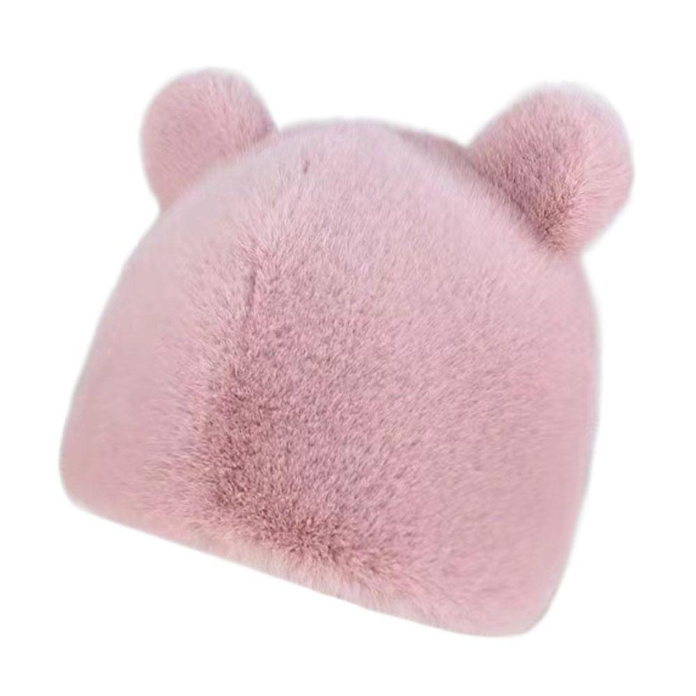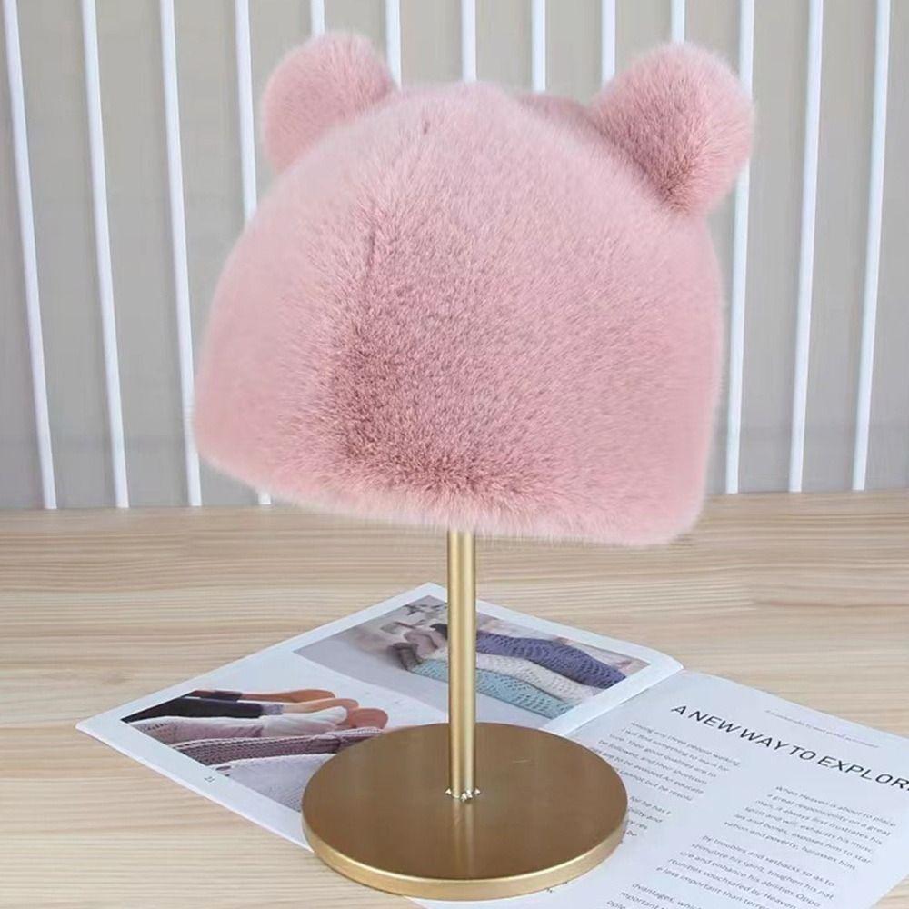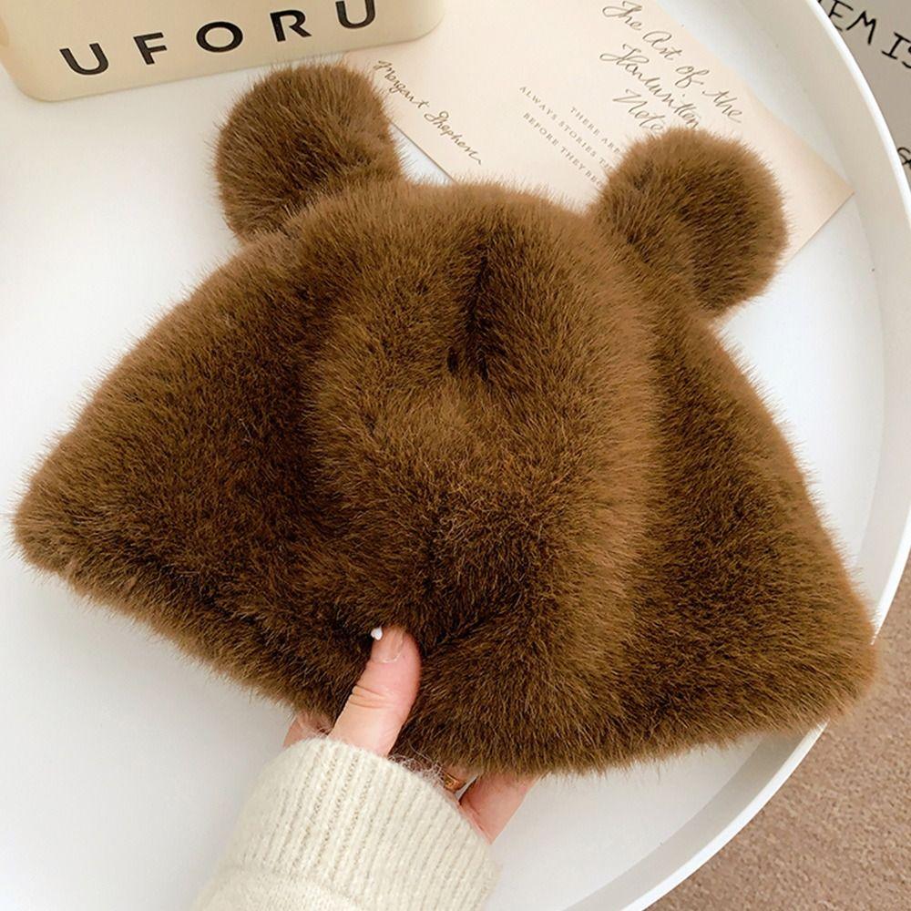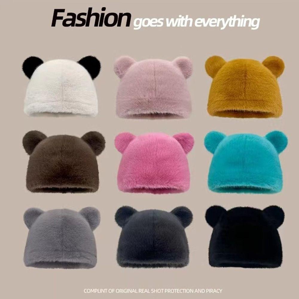 Шапка с ушками маленького медведя, плюшевая шапка из искусственного норкового флиса, универсальная женская шапка-бини