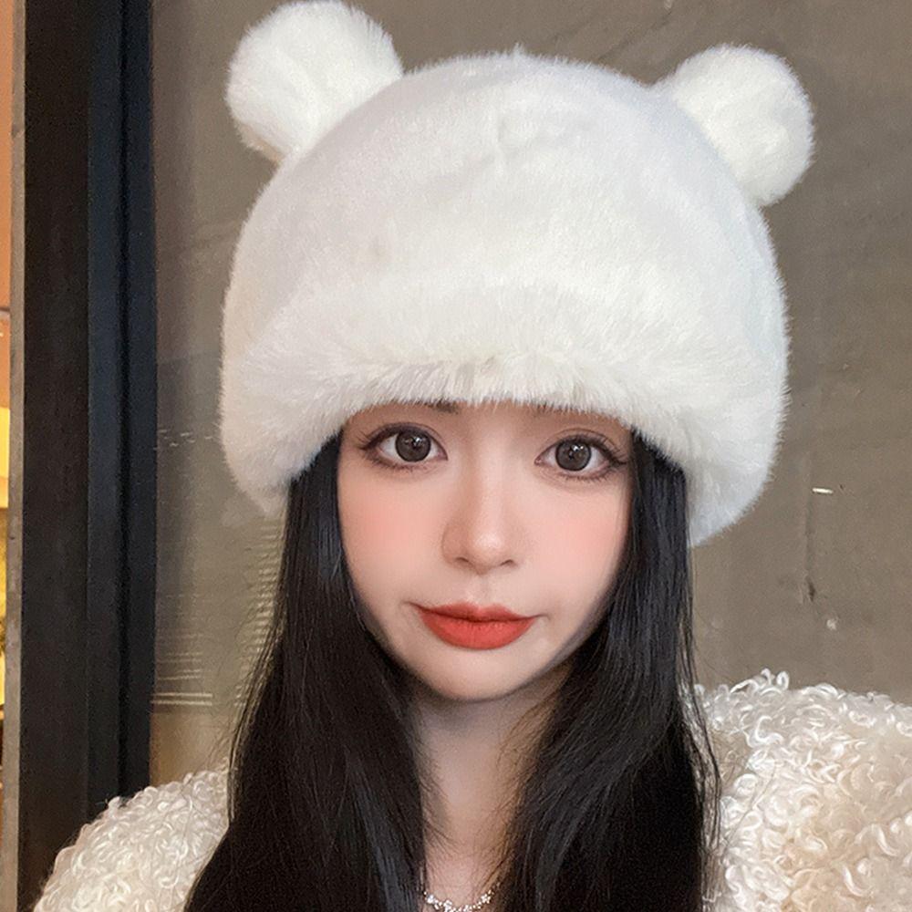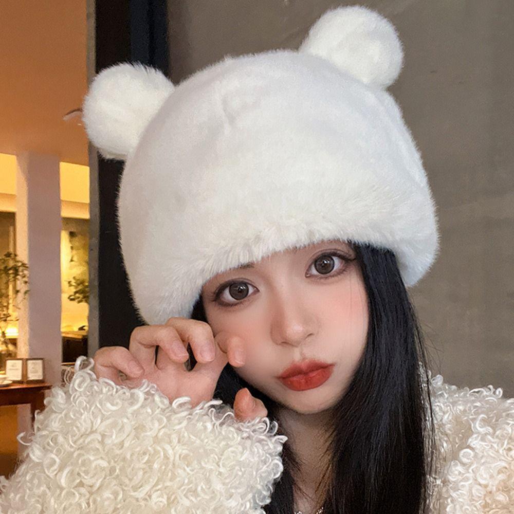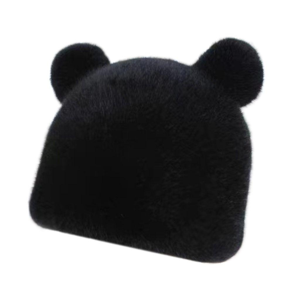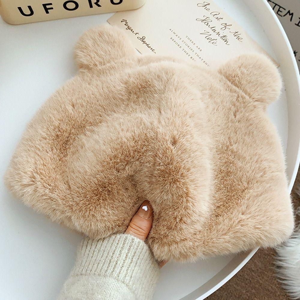 Шапка с ушками маленького медведя, плюшевая шапка из искусственного норкового флиса, универсальная женская шапка-бини