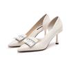 Туфли женские весенние новые лакированные туфли с тонким каблуком и пустым острым каблуком с C-образным вырезом и стразами