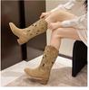 Полые толстые ковбойские сапоги на высоком каблуке женские летние новые ретро матовые высокие крутые сапоги средние ботинки Martin