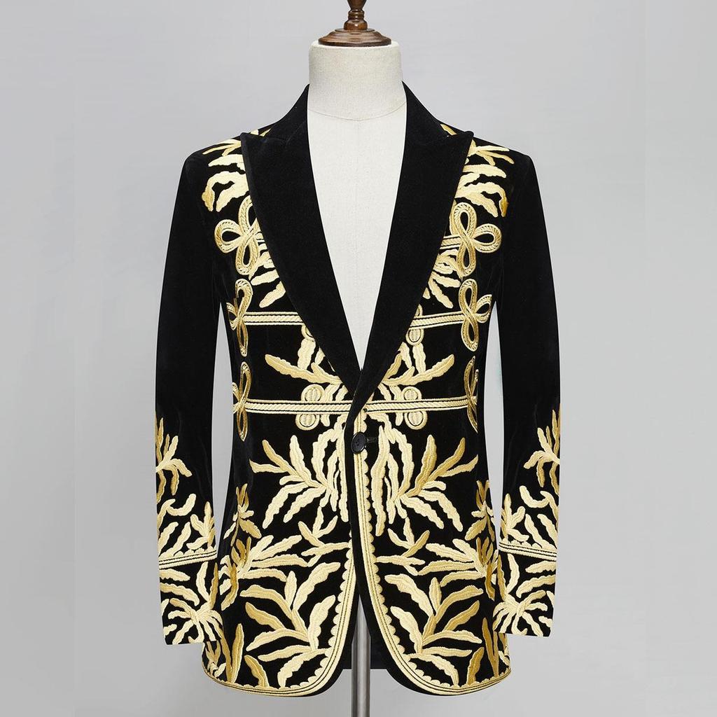 Мужские бархатные узорчатые вышитые пиджаки и блейзеры