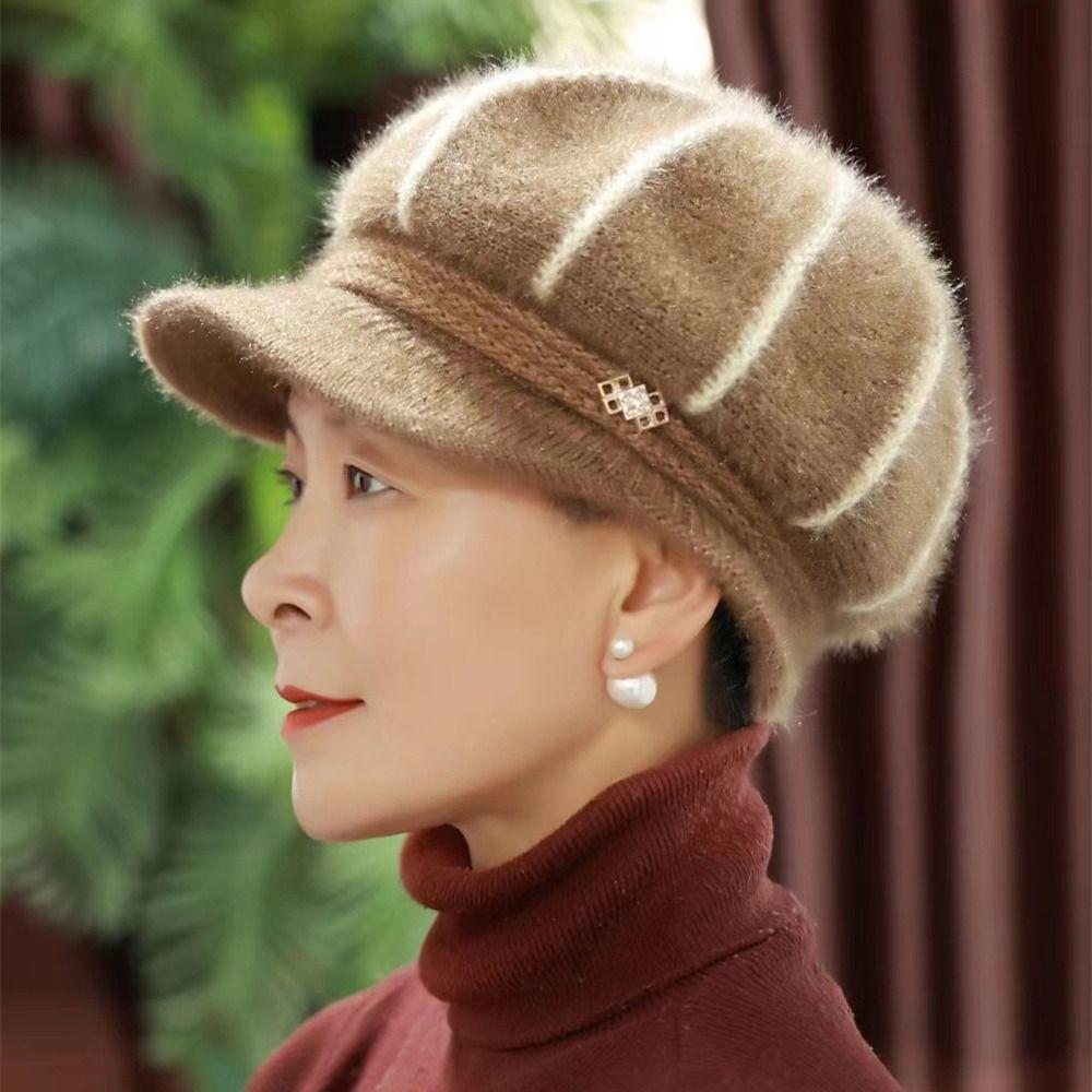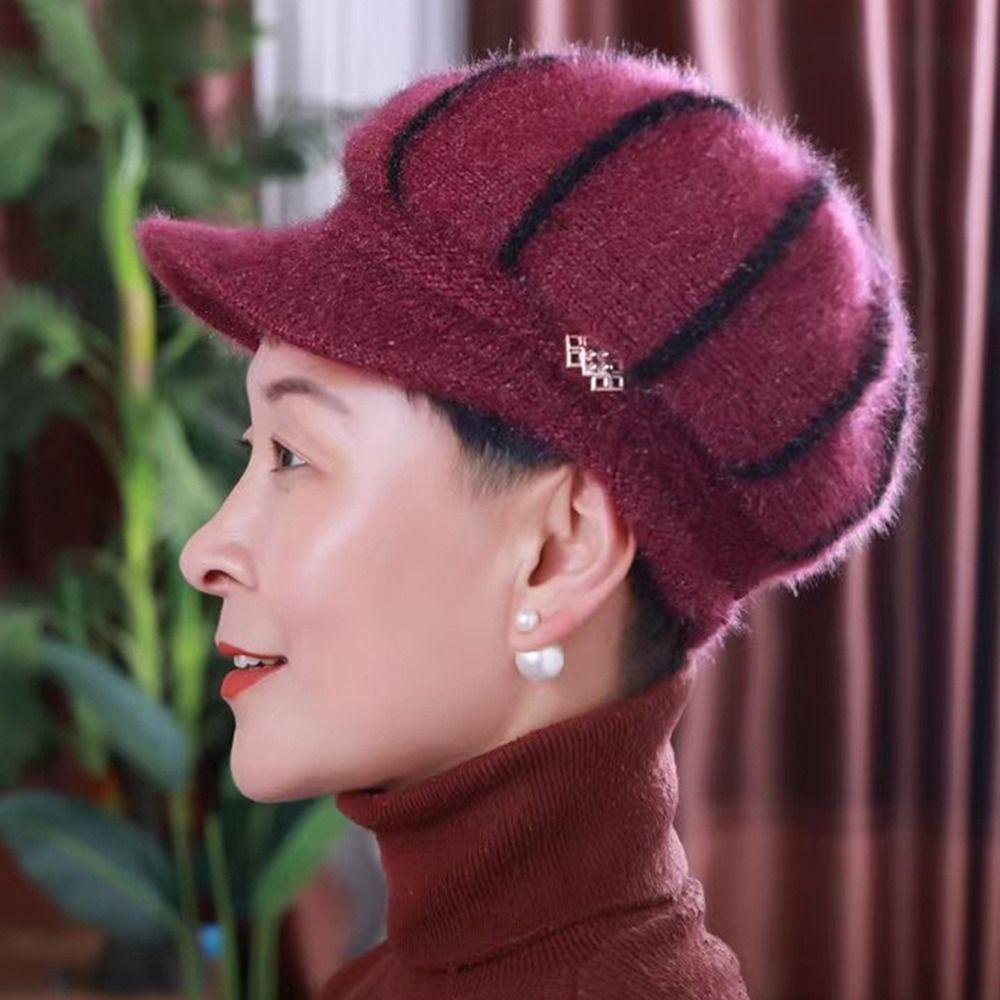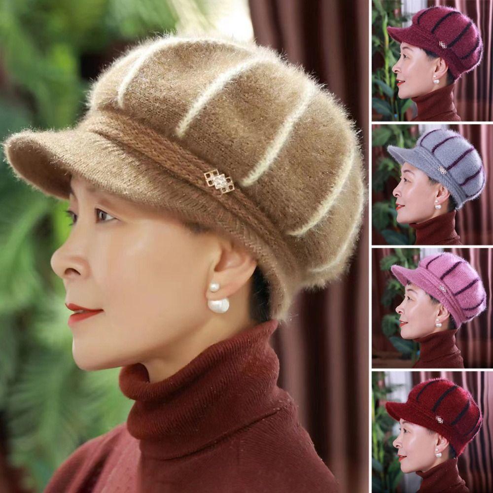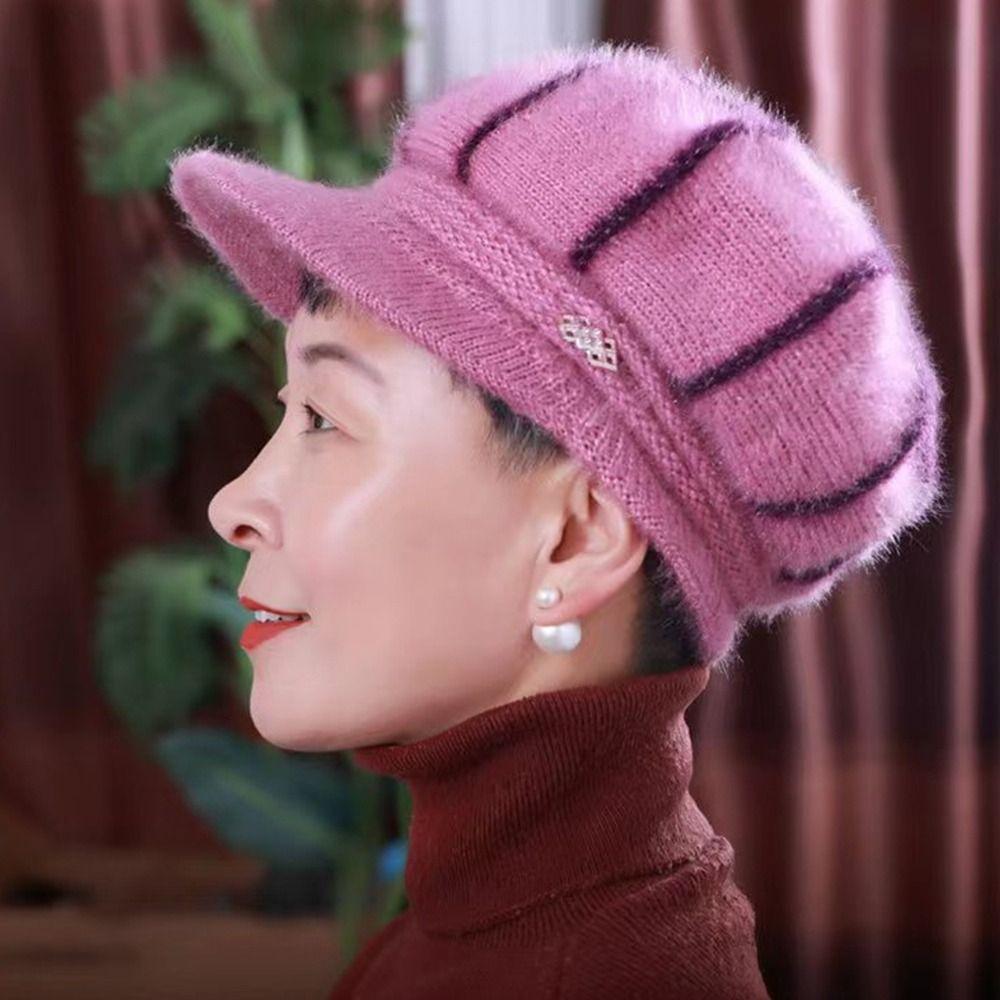 Утолщенная вязаная шапка, теплая шапка-боннет, повседневная шапка-бини для женщин среднего возраста