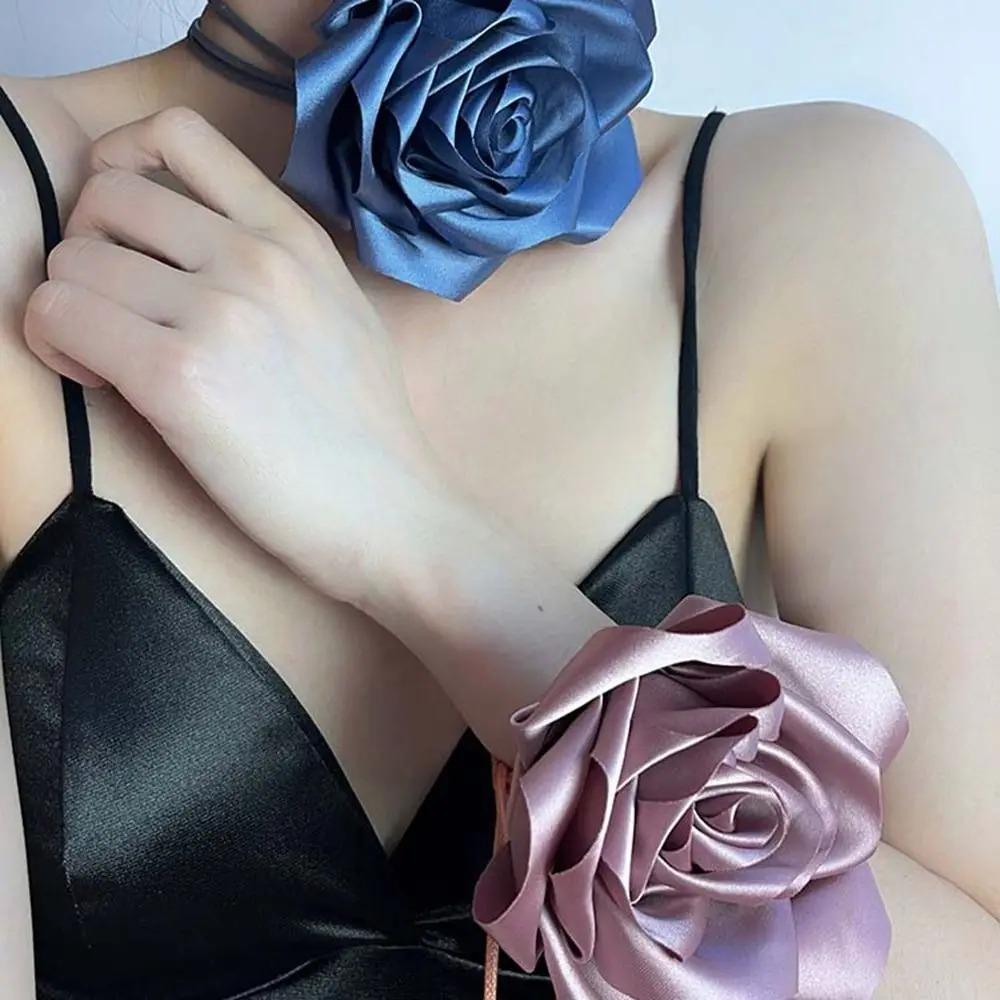 Шейный ободок, розовое кружевное ожерелье на шею, роскошный цветок, поясная цепочка, модная модная цепочка для тела, женская