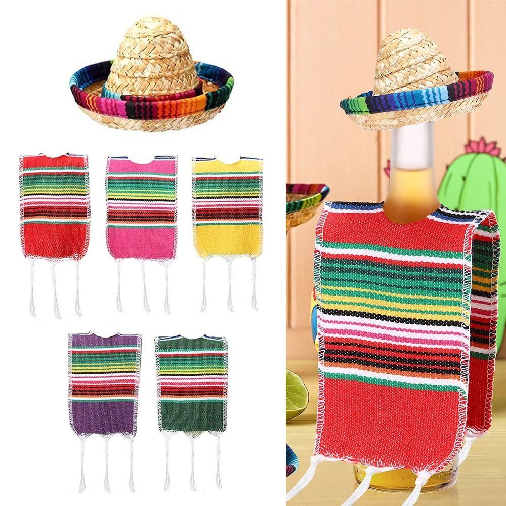 Украшение для фиесты Крошечные шляпы сомбреро Декор для вечеринки Накидка-пончо для пива Аксессуары Бутылки Серапе