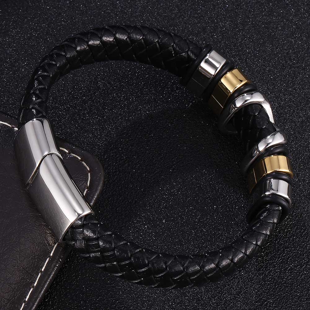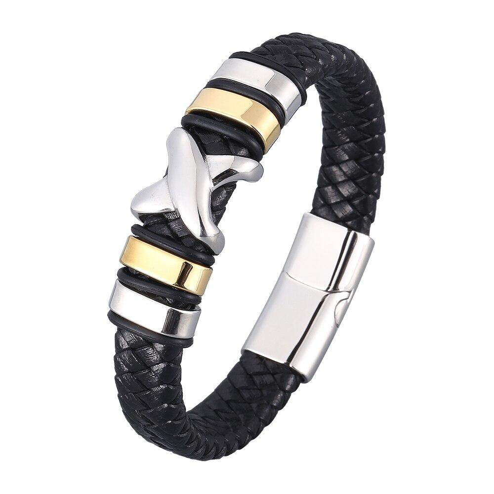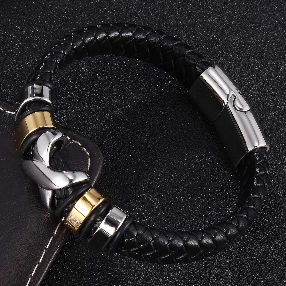 Новый мужской кожаный браслет со стальной кнопкой и подвеской в стиле панк, подарок на день рождения, мужской браслет