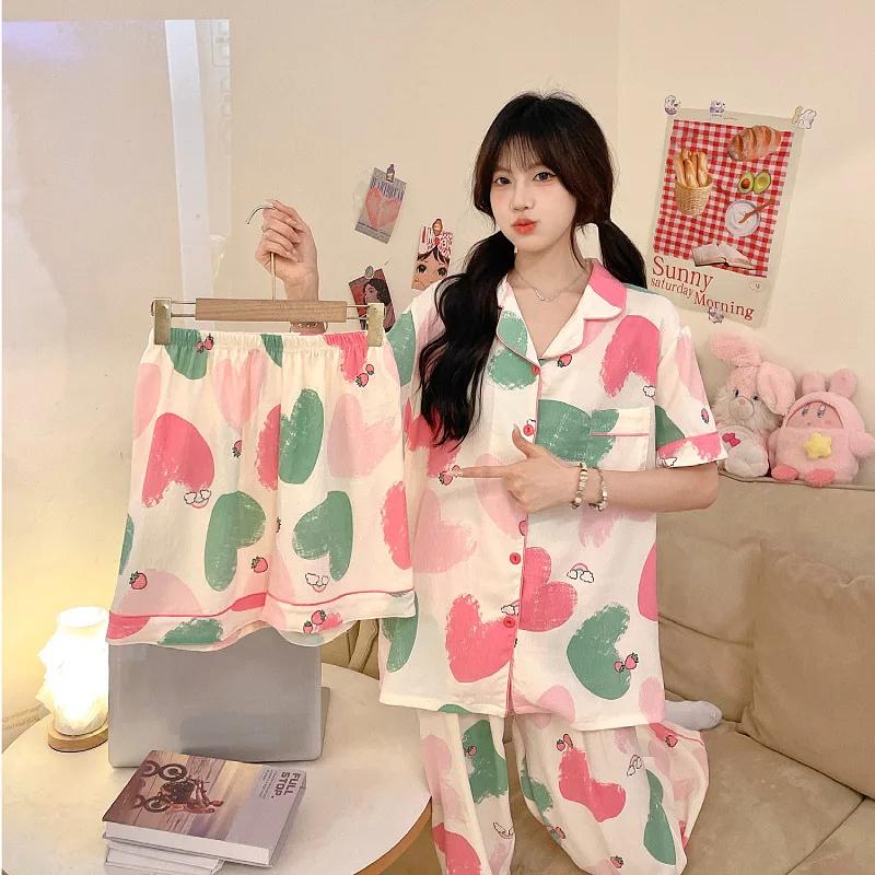 Наименование товара: Женские пижамы, женская повседневная одежда, женская повседневная одежда, женская летняя одежда, женский весенне-осенний стиль, женские короткие рукава, женские шорты, корейская версия, Япония, Франция, свободные, большие, комплект из трех предметов, новый стиль, костюм, женская летняя одежда, женский весенне-осенний стиль, женский осенне-зимний стиль, комплект из трех предметов, пижамы, повседневная одежда, корейская версия, Япония, Франция, новый стиль