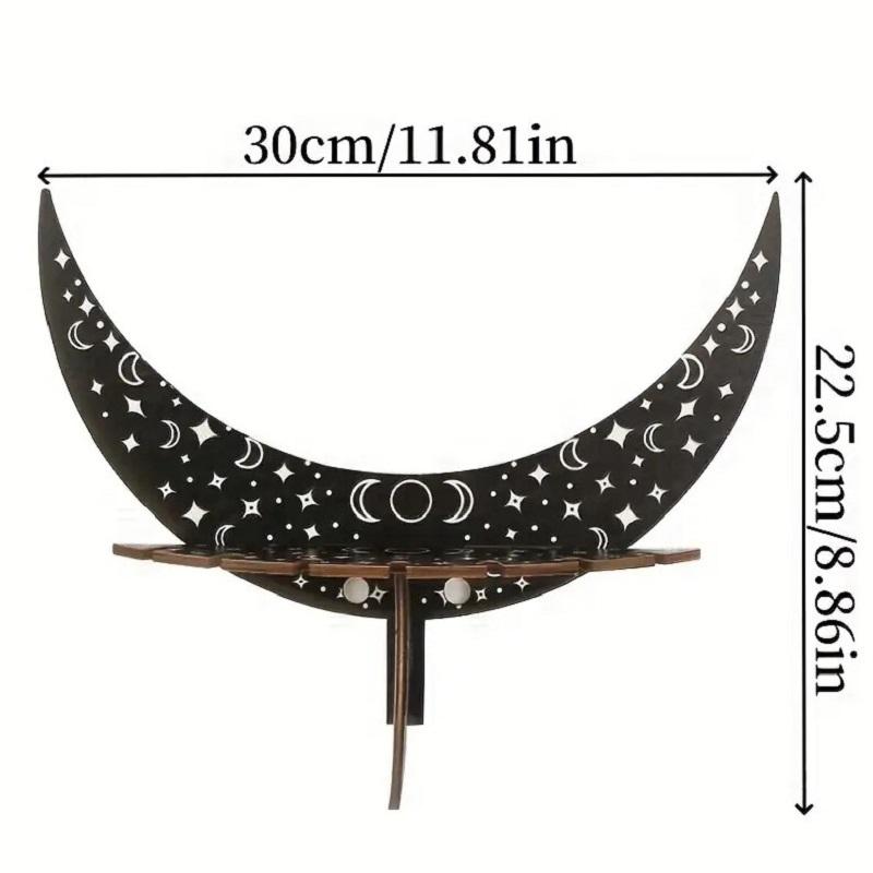Деревянная настенная полка в стиле бохо в форме полумесяца для декора кристаллов и подсвечников