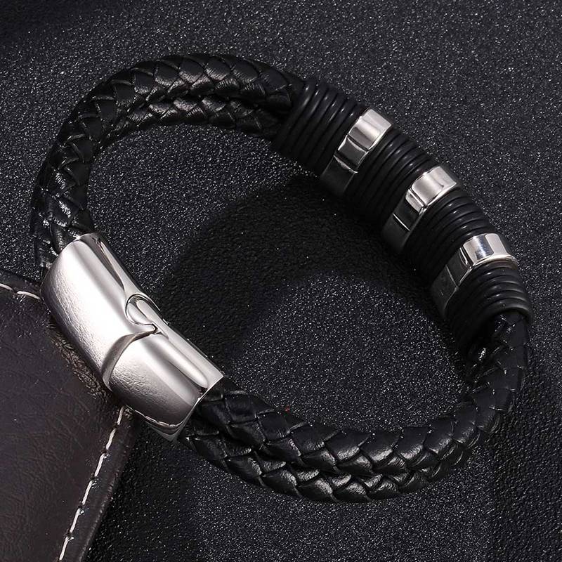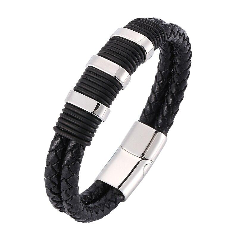 Мужские черные двойные кожаные браслеты из нержавеющей стали с застежкой, браслеты, модные браслеты, подарок