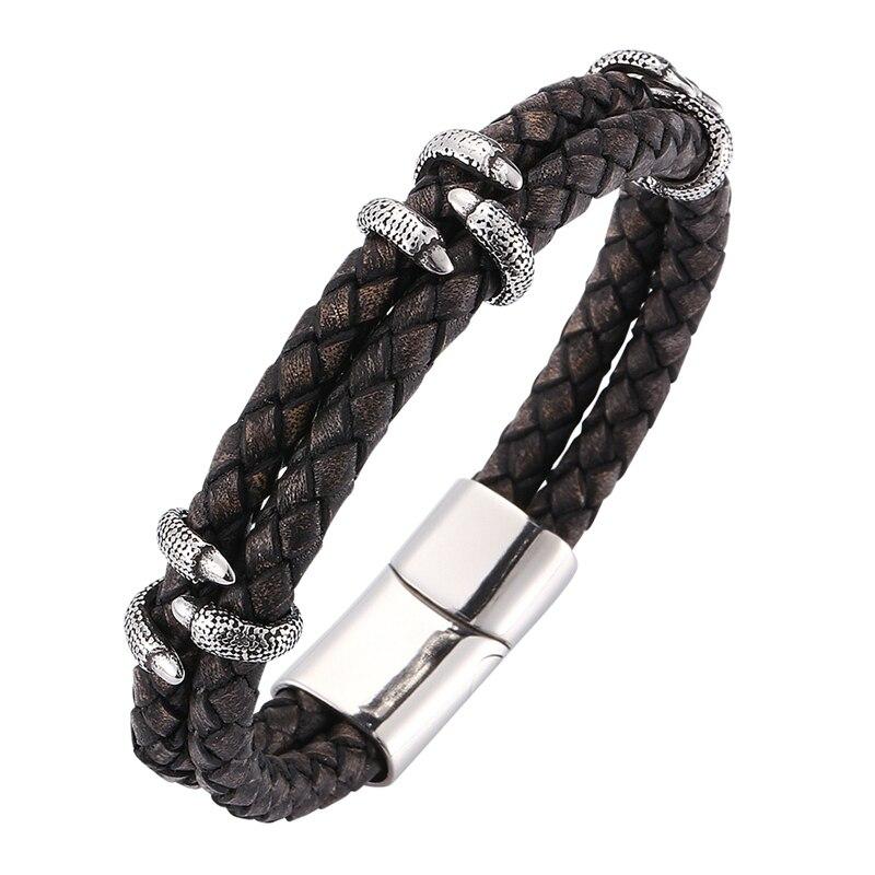 Модный браслет Мужские ювелирные изделия Браслет из натуральной кожи Браслеты из нержавеющей стали с застежкой в виде лапы Модные браслеты
