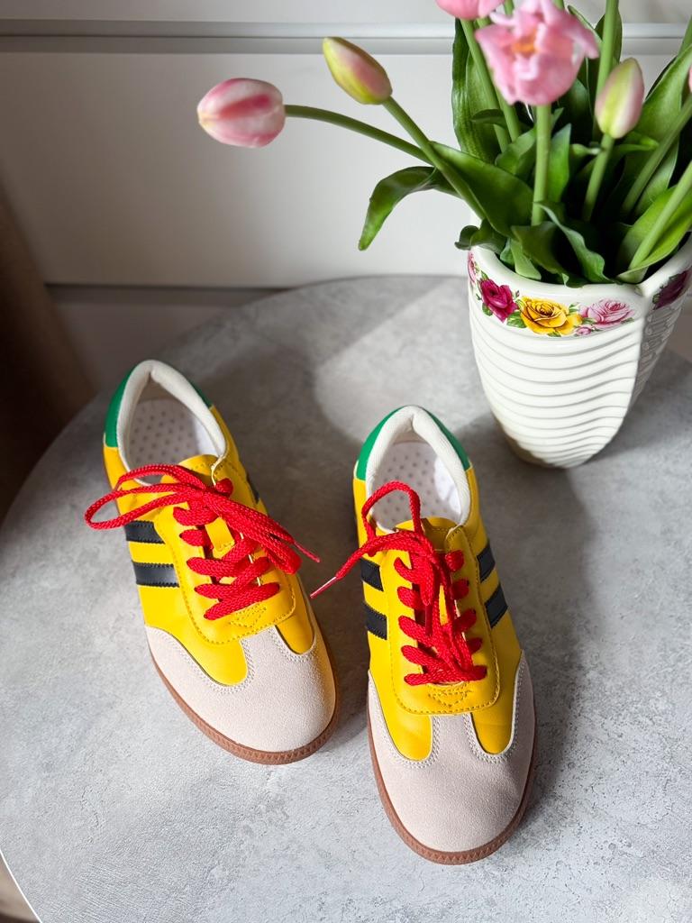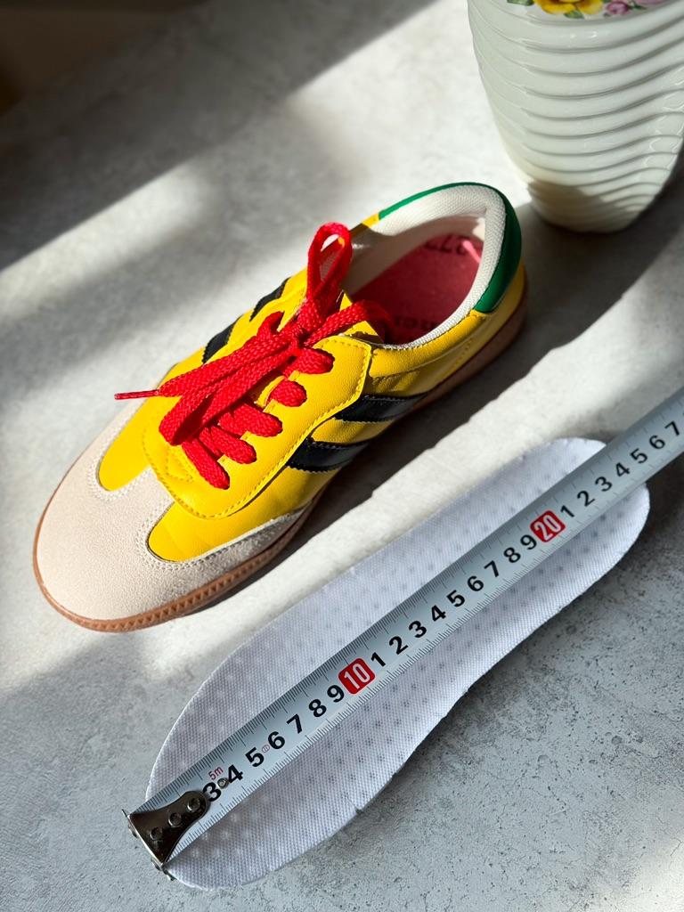 Супер-стильные кеды MCTIN 👟 Классная и очень модная модель Из эко-кожи с замшевыми вставками 💛❤️ Качество просто супер! Швы и строчки ровные. На ноге удобные, легкие! Ножки не устают, для прогулок и пробежек просто класс! В прошлом году я брала такие кеды в классической расцветке. В этом году решила взять яркие на весну и лето 💛❤️ Круто и стильно смотрятся, очень аккуратно на ножке 👌 Идеальны с джинсами, шортами, с некоторыми видами юбок и платьев тоже круто впишутся в образ! Такая модель сейчас очень актуальна! Моя ножка 24 см, размер я взяла 38. Подошли отлично 👌 Стелька 24,5см. В общем очень довольна покупкой! 🪩Доставка около месяца до Москвы! Спасибо продавцу и joom!