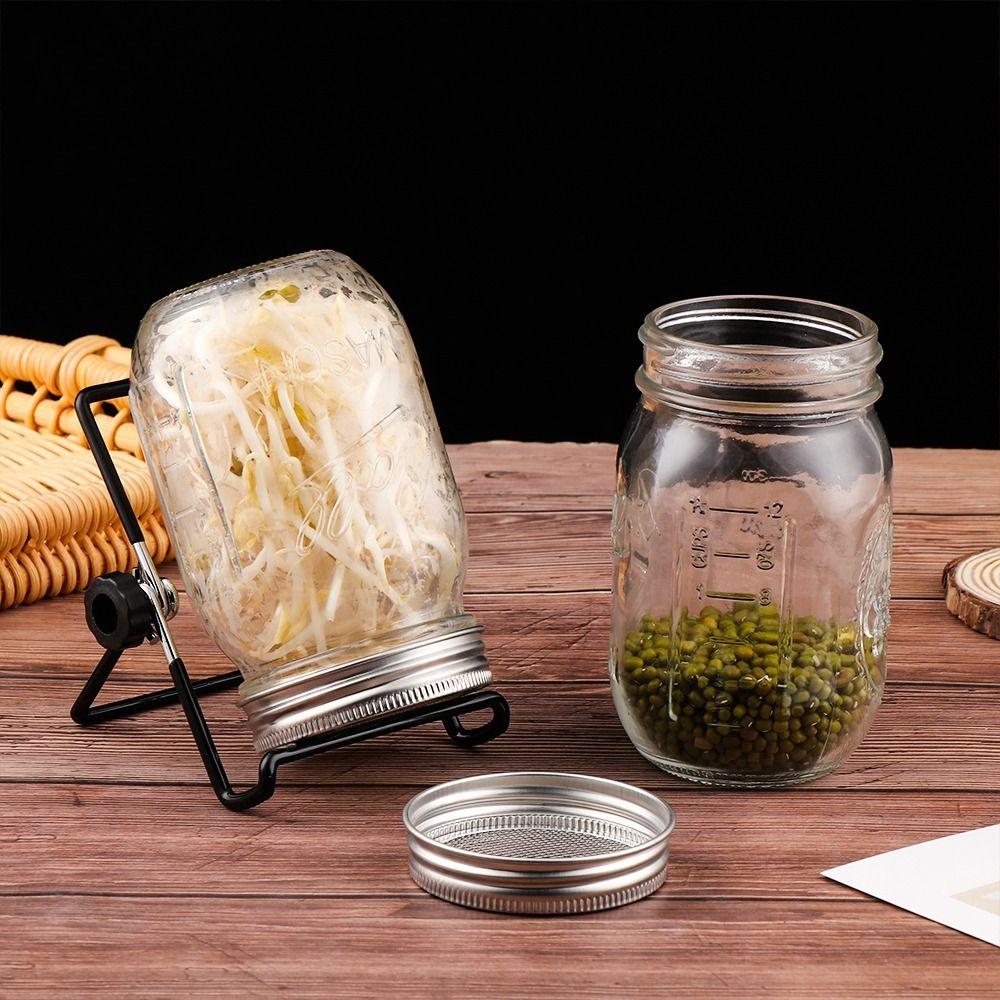Growing Seed Germination Wide Mouth Germinator with Screen Lids Sprouting Jars 16/32oz Mason Jar
