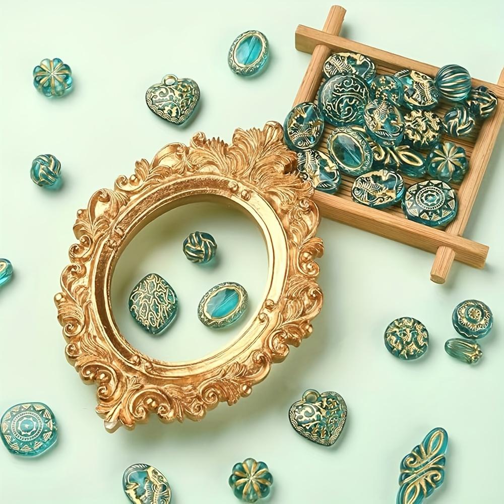 10/20/30 г Ретро-богемские акриловые бусины 16 позолоченных акриловых бусин бирюзового цвета с интервалами, прозрачная имитация чешского бисера, ювелирное производство