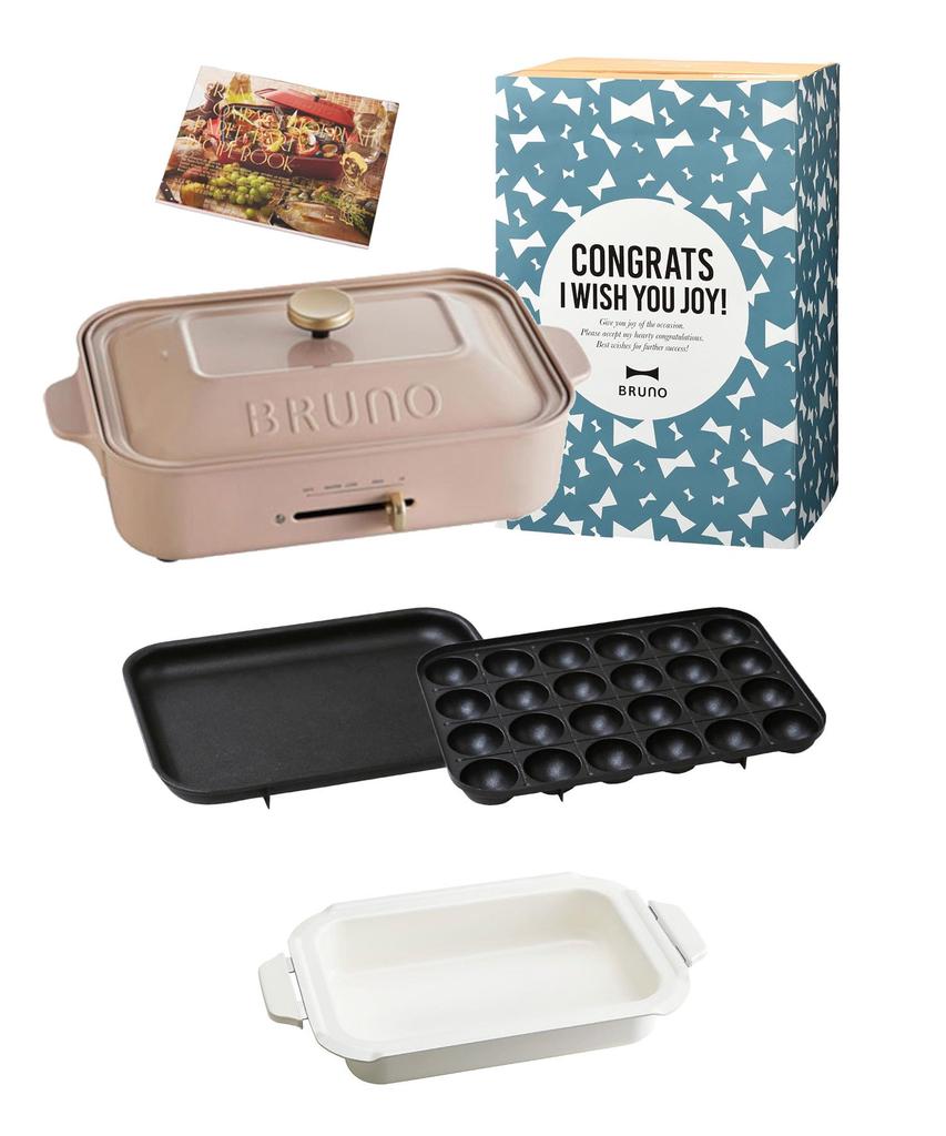 Компактная плита BRUNO, основной блок, 3 типа плит, керамическая кастрюля с покрытием, чехол для празднования Якинику, книга рецептов в комплекте, розовый, бежевый, стильный, милый Этот 1