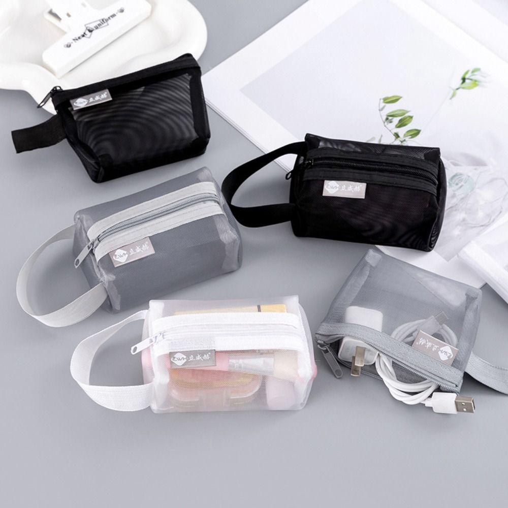Легкая квадратная сетчатая сумка для хранения, косметичка большой емкости, портативный мини-кошелек на молнии для монет