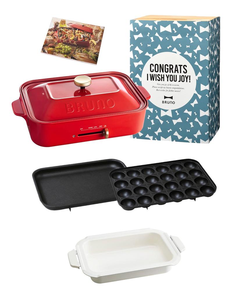 Компактная плита BRUNO с 3 типами пластин, керамическая кастрюля с покрытием, чехол для празднования Якинику, книга рецептов в комплекте, красный, стильный, милый. Этот 1 блок