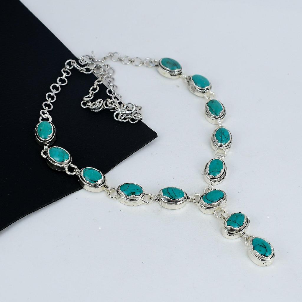 Ожерелье из серебра 925 пробы с бирюзой Санта-Роза, серебряное ожерелье с бирюзой Санта-Роза для жены, ожерелье унисекс, подарок