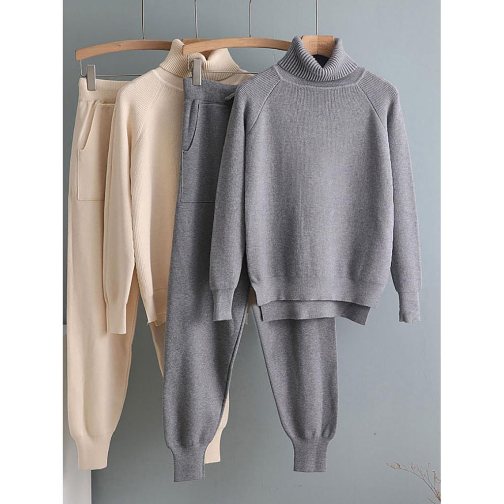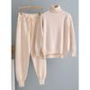 Комплект из 2 предметов женский трикотажный спортивный костюм водолазка свитер + морковные спортивные штаны пуловер свитер комплект ШИК трикотажная верхняя одежда