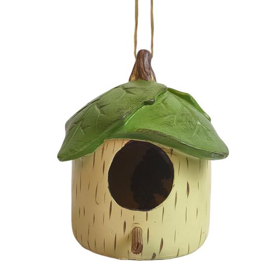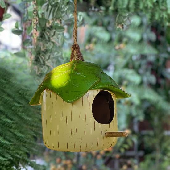 Представляем домик для птиц — очаровательное дополнение к вашему уличному пространству.. Этот скворечник легко подвешивается, в верхней части имеются отверстия для удобного размещения с помощью веревок или проволоки.. Дружелюбный дизайн включает вход диаметром 4 см, идеальный для колибри, с шестом внутри для сидения.. Изготовленный из высококачественной смолы, этот скворечник прочный и долговечный, украшен декоративными листьями для привлечения колибри.