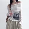 Прозрачная темная футболка с принтом Повседневная футболка с разрезом по горловине и длинным рукавом Женская мода Уличная одежда для женщин