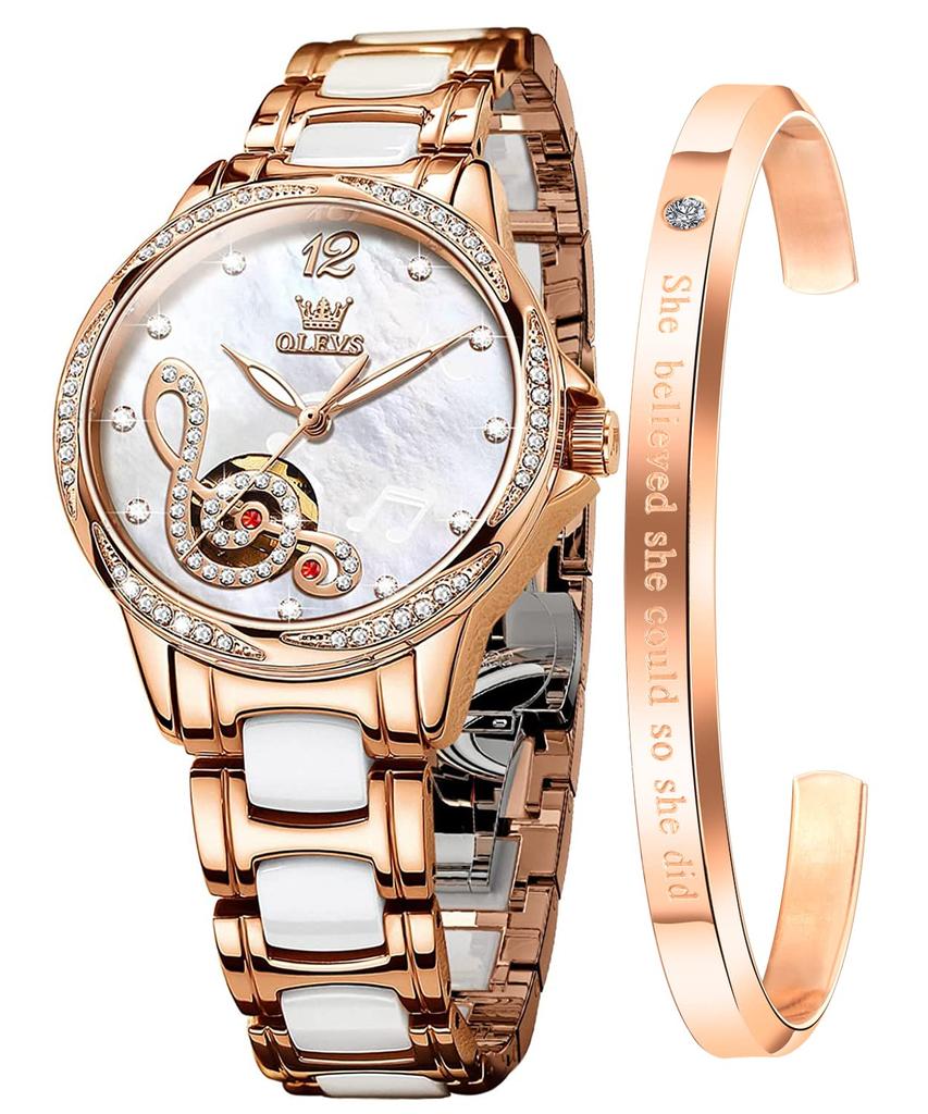 OLEVS механические наручные часы с автоматическим заводом керамические розовые золотые кристаллы водонепроницаемые нержавеющая сталь белые часы белые женские женские — купить товар онлайн с бесплатной доставкой до всему миру!