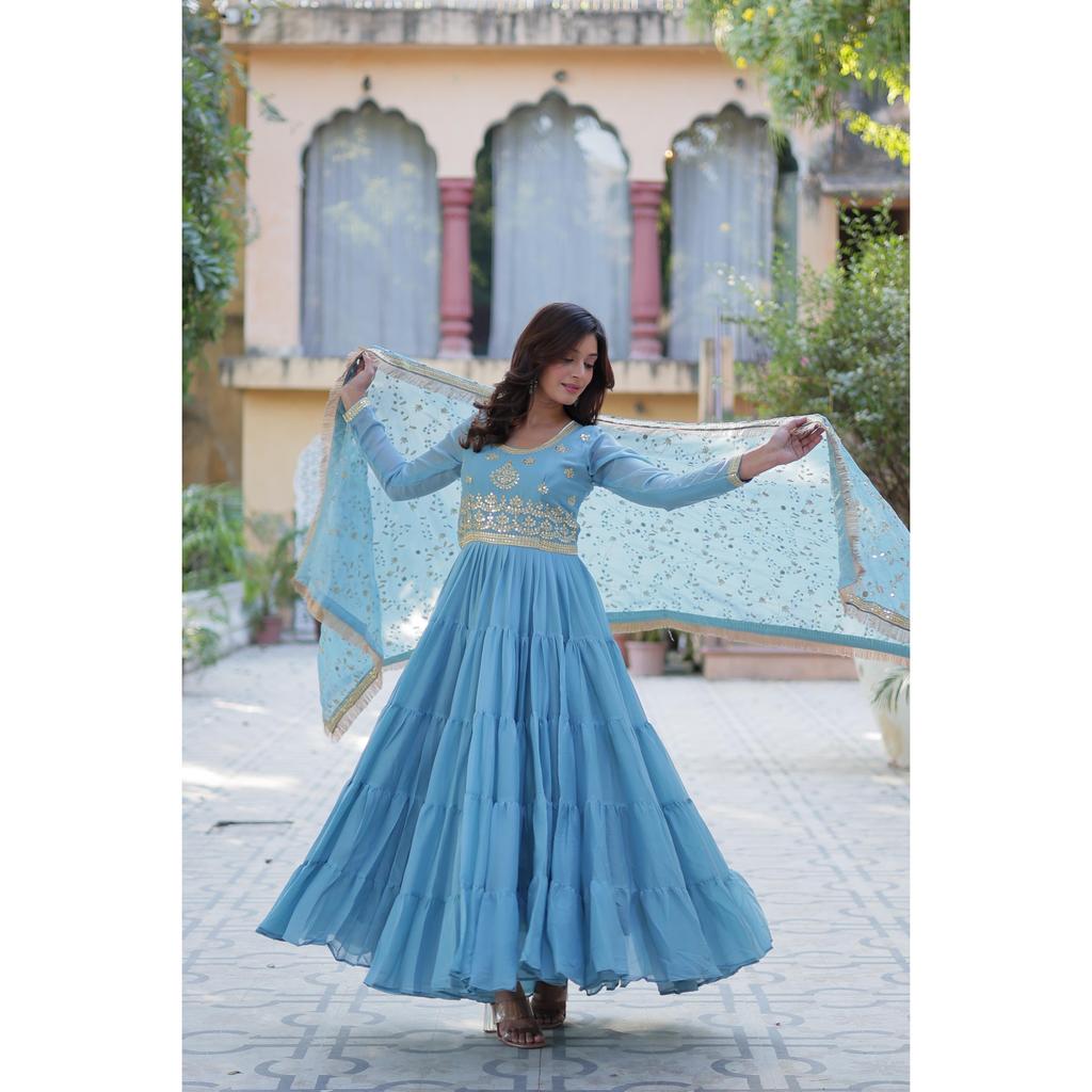 Желанное женское платье с пышной юбкой, выполненное из тканей Star Georgette и дизайнерской вышитой дупатты с привлекательной кружевной каймой, ЦВЕТ:- 4