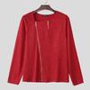 INCERUN Мужские весенние футболки с длинным рукавом на молнии с текстурой
