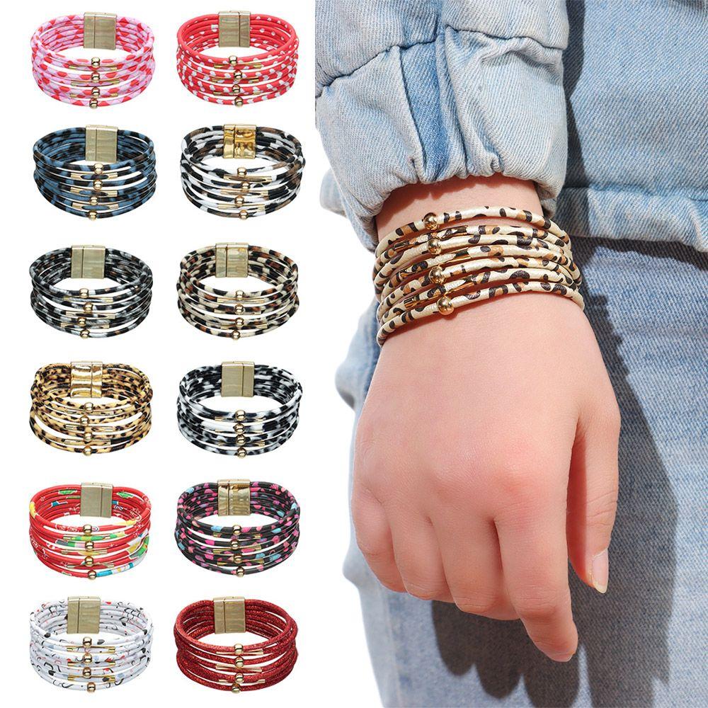 Fashion Elegant Jewelry Multilayer Bangles Wide Wrap Bracelet Leopard Leather Bracelets Wrist Bands