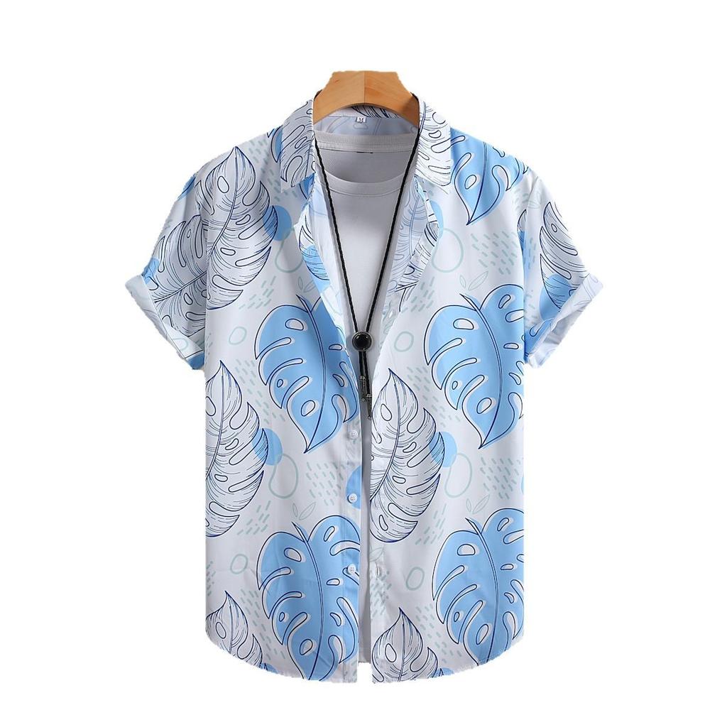 Мужская рубашка с коротким рукавом, небесно-голубая рубашка с тропическим цветочным принтом для мужчин, гавайский стиль отдыха, лето 2025 г., новая коллекция