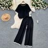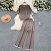 Летний женский трикотажный свитер, брюки, комплект из двух предметов, женский свитер с коротким рукавом, топ и брюки длиной до щиколотки, спортивный костюм