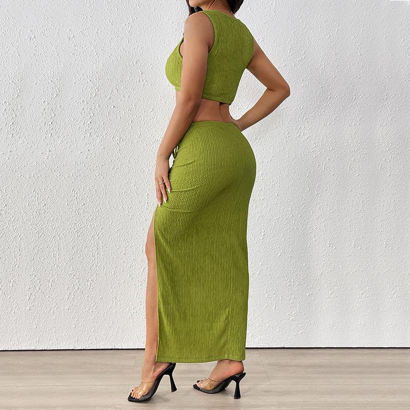 Летний женский комплект из двух предметов: юбка с разрезом на завязках и безрукавка