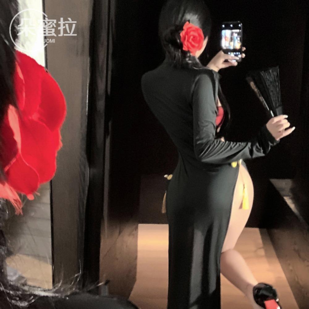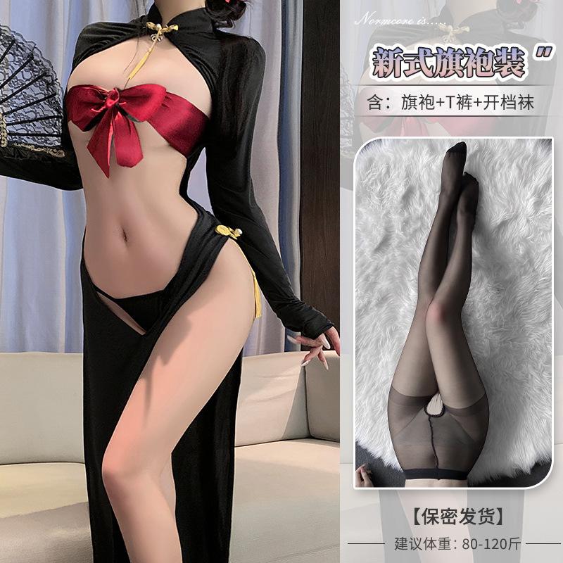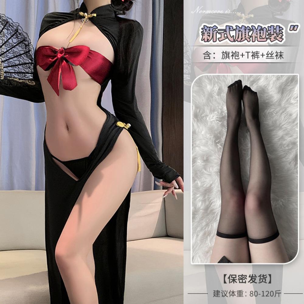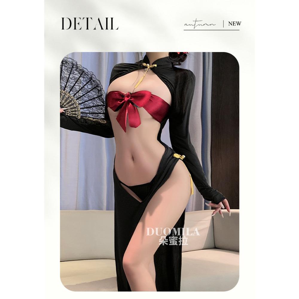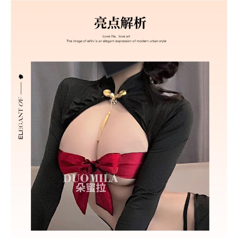 Домила надевает два передних и задних платья, чтобы поймать сюрпризы, прежде чем открыть занавес, чтобы показать грудь. Эротическое нижнее белье Cheongsam F877. Сексуальная искушающая униформа.