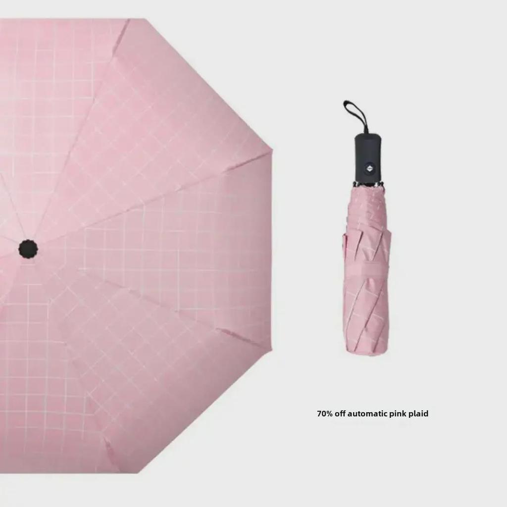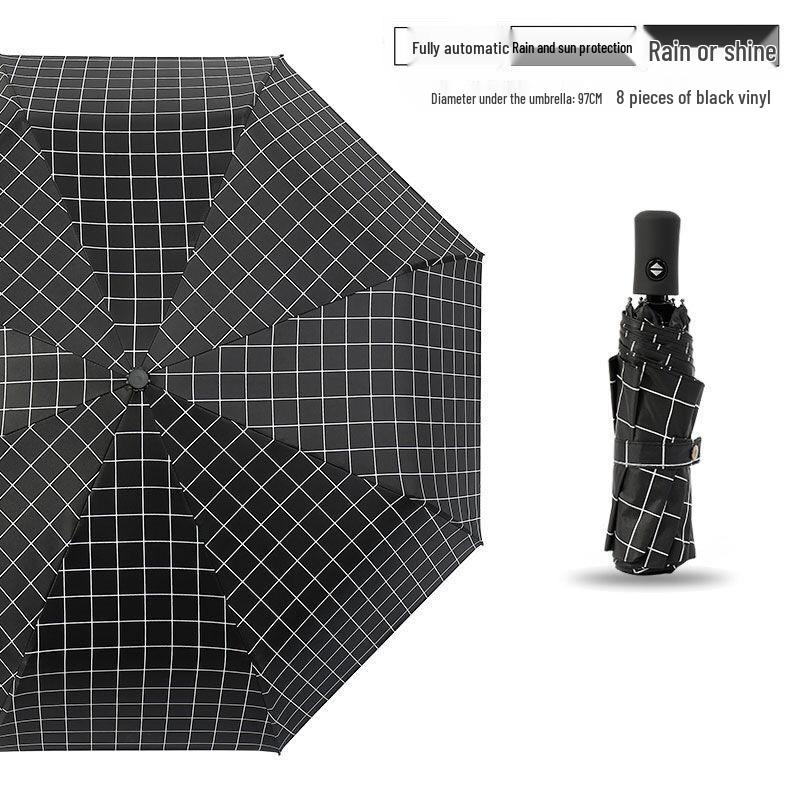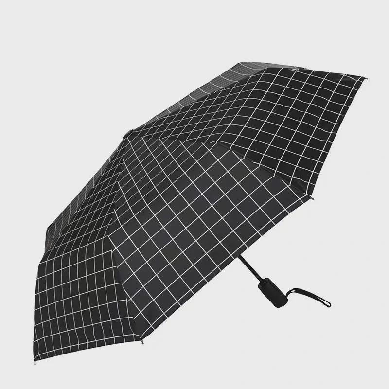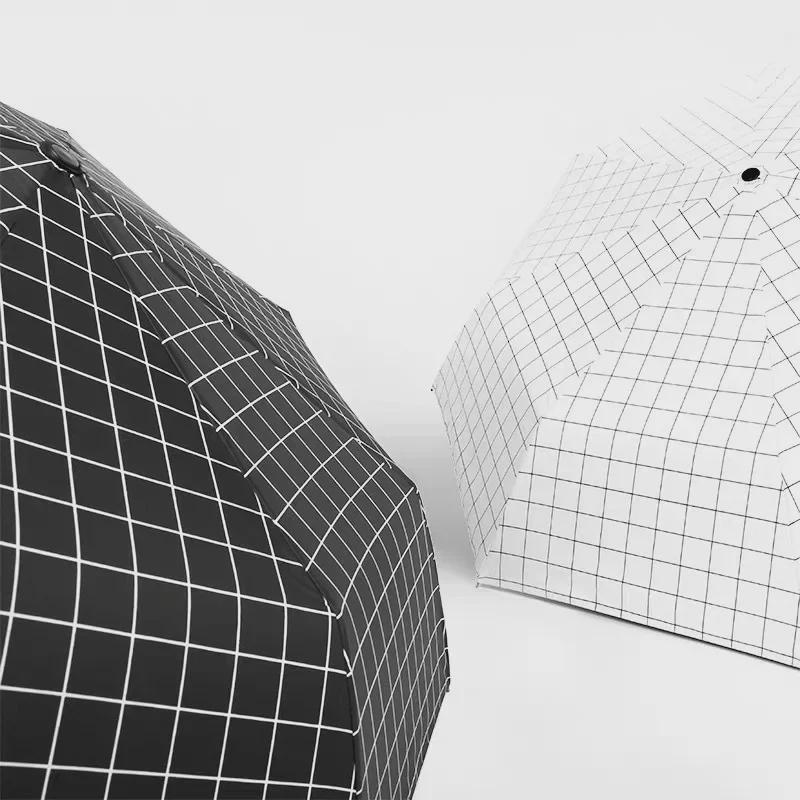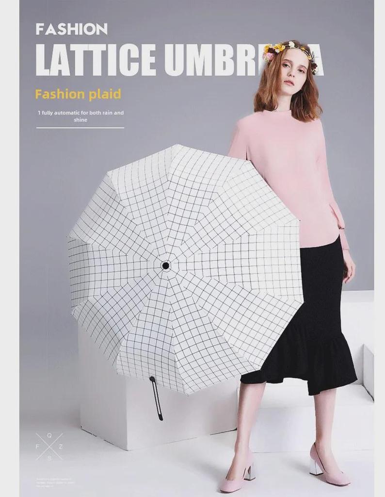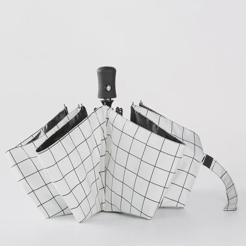 Автоматический женский зонт: Черно-белая клетчатая модель с защитой от ультрафиолета, складная конструкция для студентов