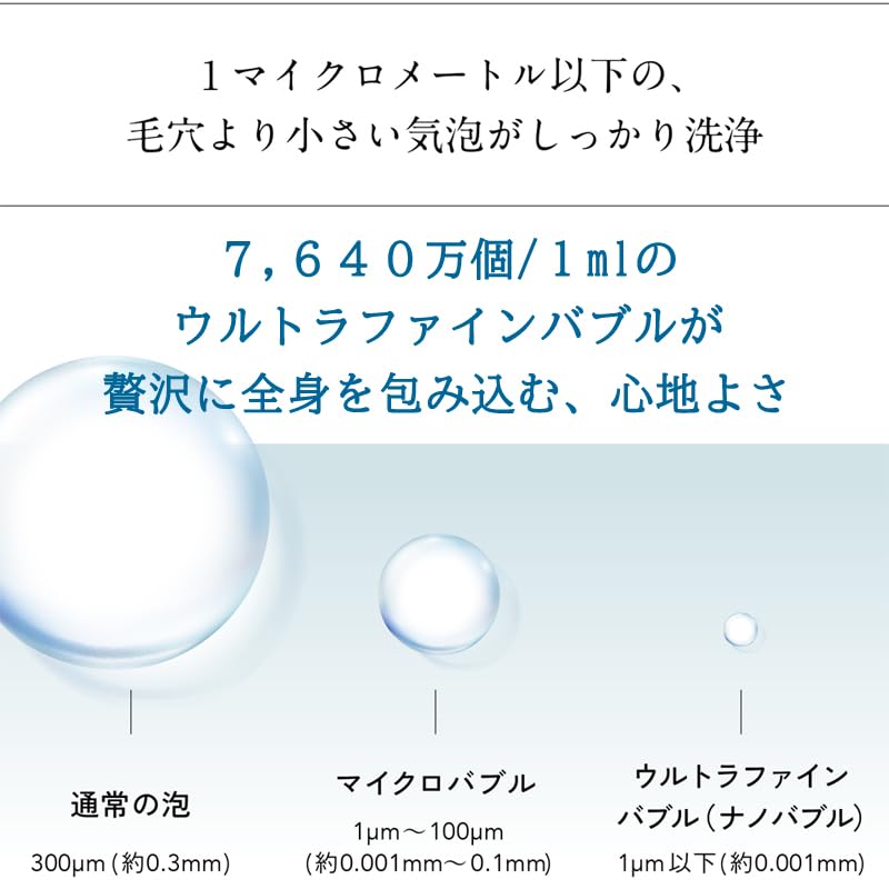 Aquabule Shower генерирует как ультрамелкие пузырьки, так и микропузырьки, представляющие собой чрезвычайно маленькие пузырьки размером 0,0941 мкм. (0,0000941мм), которые поглощают и очищают кожное сало, грязь и запахи глубоко в порах, что приводит к оздоровлению кожи. Вы также можете рассчитывать на сохранение тепла и увлажняющий эффект, поэтому его рекомендуется использовать в сезоны, когда вы беспокоитесь о том, что можете замерзнуть в ванне.. Успокойте свое уставшее тело после долгого дня с помощью успокаивающего тумана или попробуйте простимулировать напряженные плечи мощной струей. Наслаждайтесь собственным роскошным временем релаксации в соответствии с вашим настроением и предпочтениями в этот день.. Он не только идеально подходит для вас, но и поставляется в подарочной коробке, что делает его идеальным подарком для вашей семьи, друзей и близких.. ★Эстетика дома с водяным туманом★ Режим тумана отличается высоким качеством и бережным отношением к коже. Мягко окутывает и успокаивает уставшую кожу после долгого дня.. Его хорошо приняли многие женщины, которые говорят, что теперь могут наслаждаться ощущениями, как в салоне красоты, у себя дома, и говорят: «Теперь я с нетерпением жду возможности посмотреть на себя в зеркало каждый день». *«Fine Bubble», «Ultra Fine Bubble», «FINE BUBBLE» и логотип «FBIA» являются зарегистрированными товарными знаками Fine Bubble Industry Association (ФБИА). 《4-ступенчатый режим переключения + функция остановки》 1) Мощная струя... Гидравлический массаж кожи головы, плеч, талии и т. д.