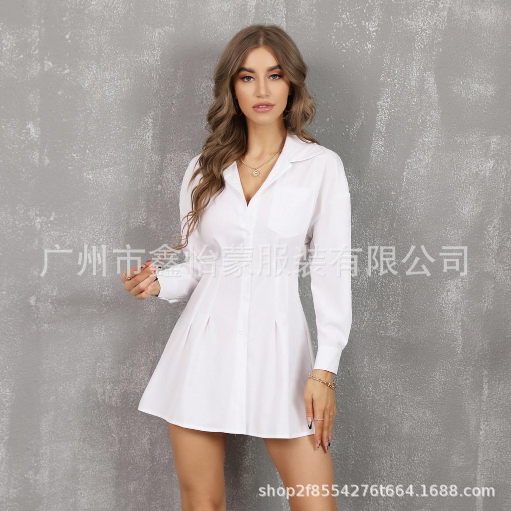 YYFS Женская мода весна осень однотонный принт длинный рукав поло воротник высокая талия повседневные платья