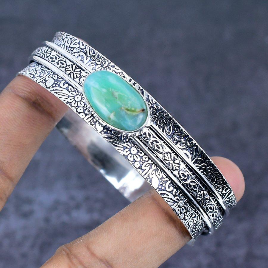 Браслет-манжета из серебра 925 пробы с драгоценным камнем хризопраз ручной работы 7,5 дюйма z4O03