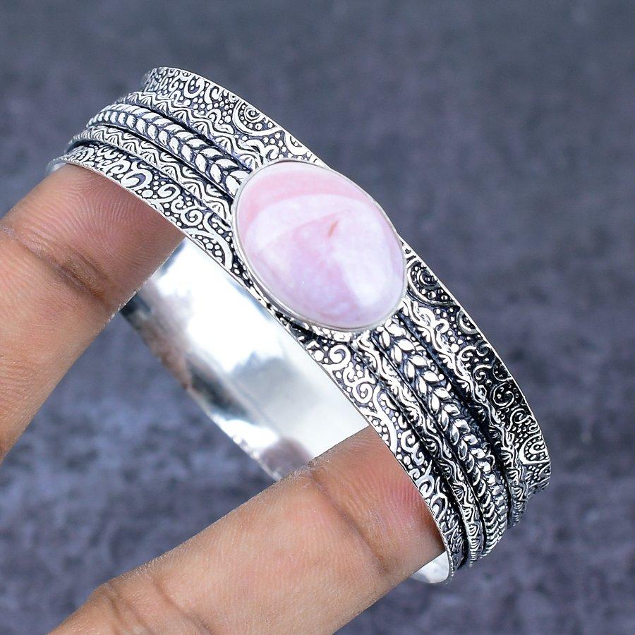 Pink Opal Gemstone Handmade 925 Sterling Silver Cuff Bangle 7.5" w9o12