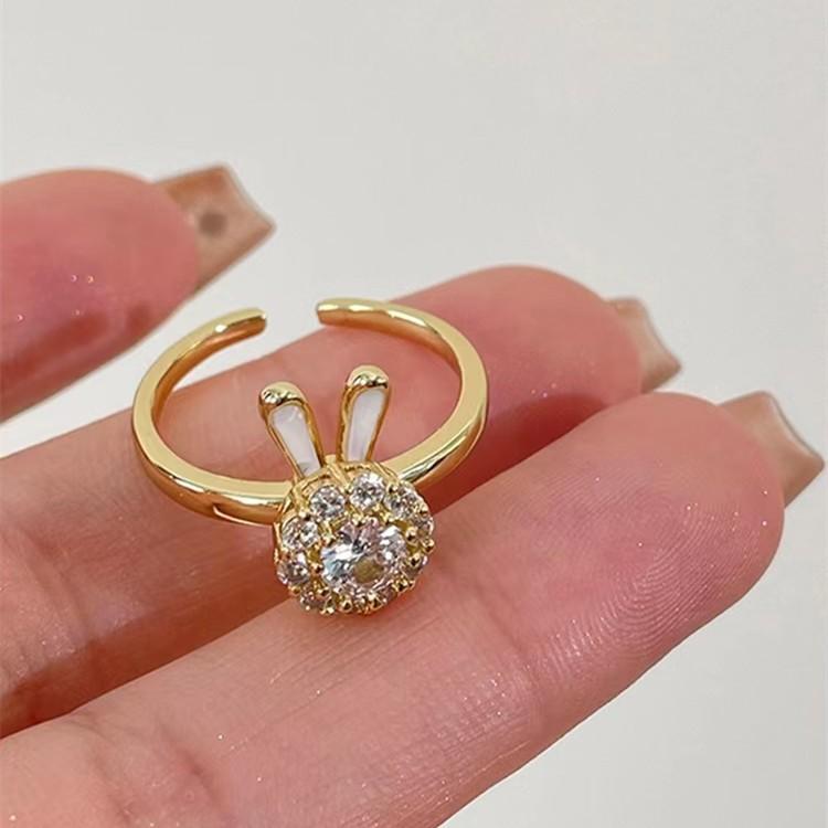 Милое корейское кольцо-серьга в виде кролика с бриллиантами для женщин, милое и изысканное