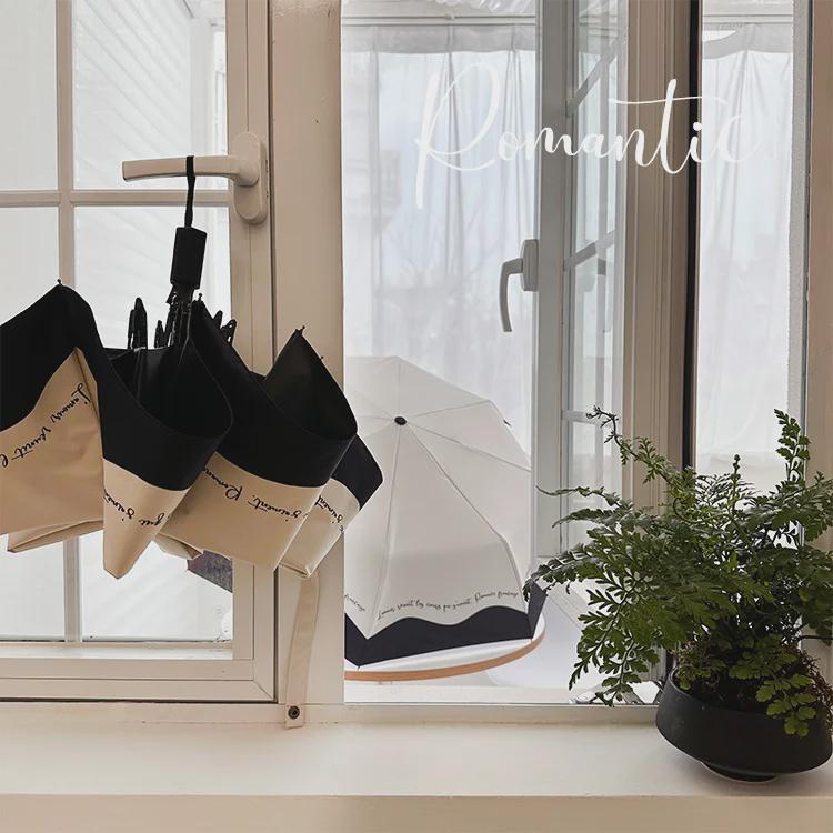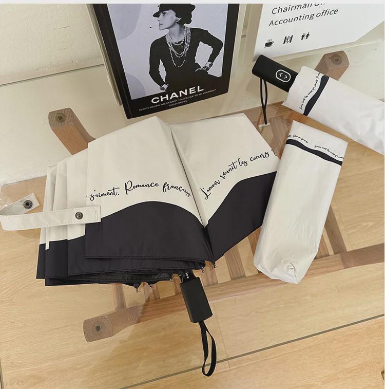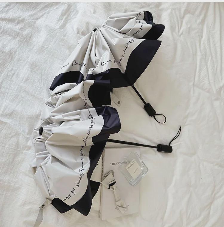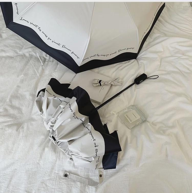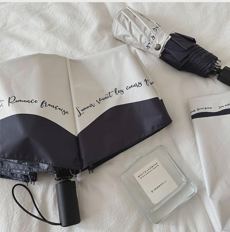 Романтичный женский зонтик во французском стиле: Черно-белая окантовка, защита от ультрафиолета и солнца, автоматическая для солнечных и дождливых дней