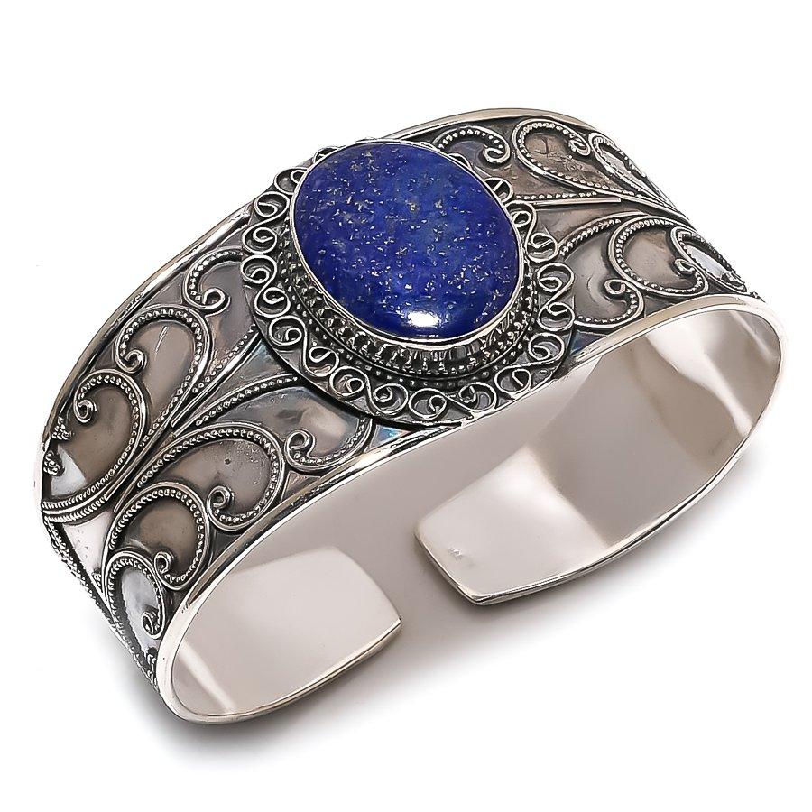 Лазурит Драгоценный камень Ручная работа 925 Стерлинговое серебро Манжета Браслет Регулируемый J3V54 — купить товар онлайн с бесплатной доставкой по всему миру!