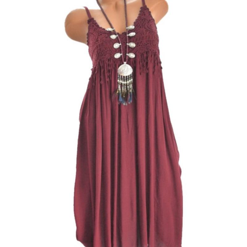 QICED Женские однотонные винтажные свободные платья из хлопка и льна