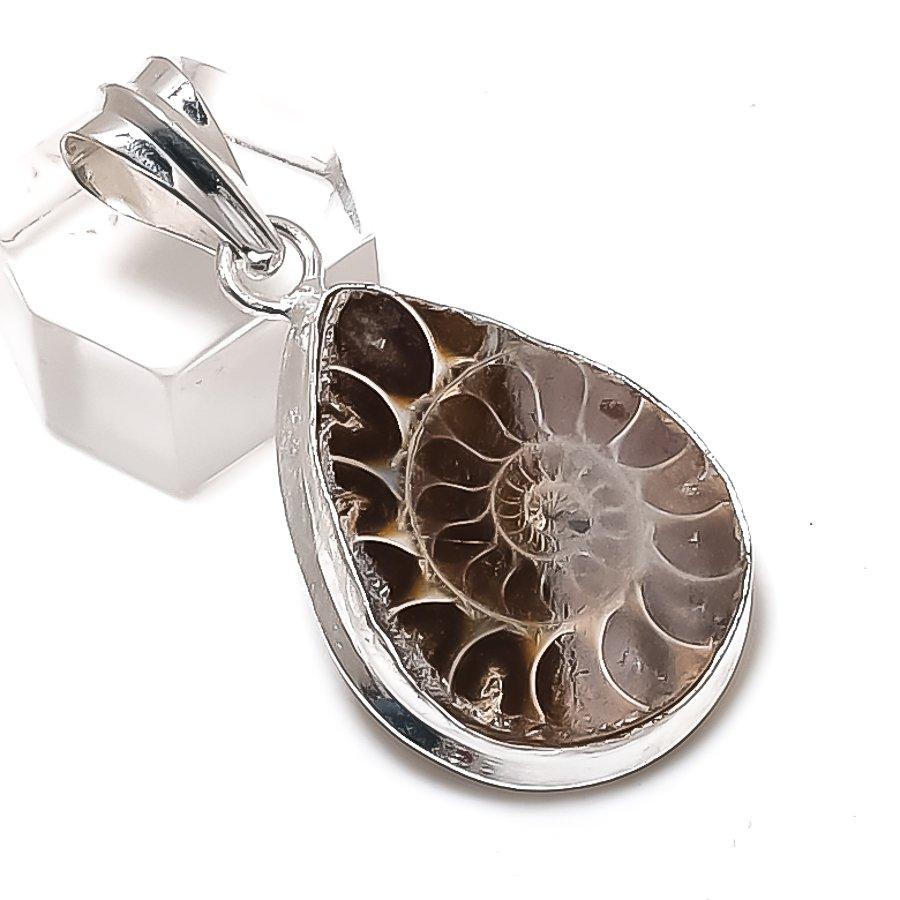 Ammonite Fossil Gemstone Handmade 925 Sterling Silver Jewelry Pendant 2.48" s8D76