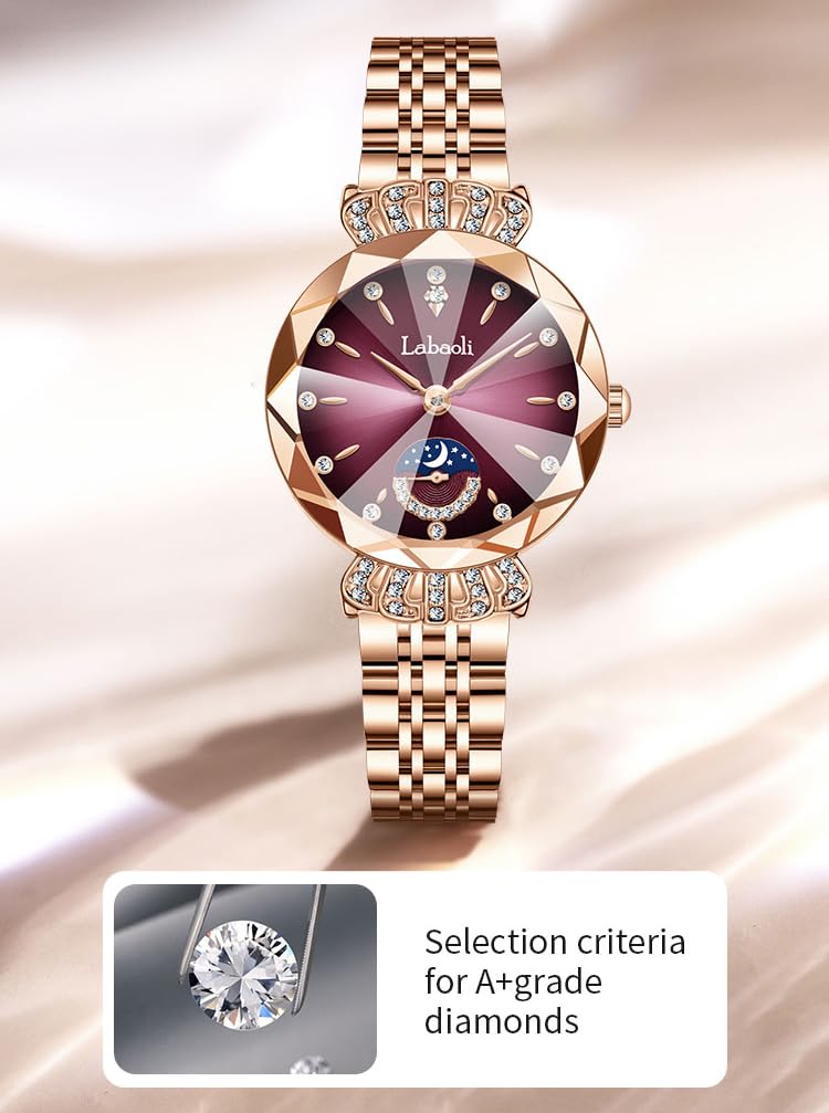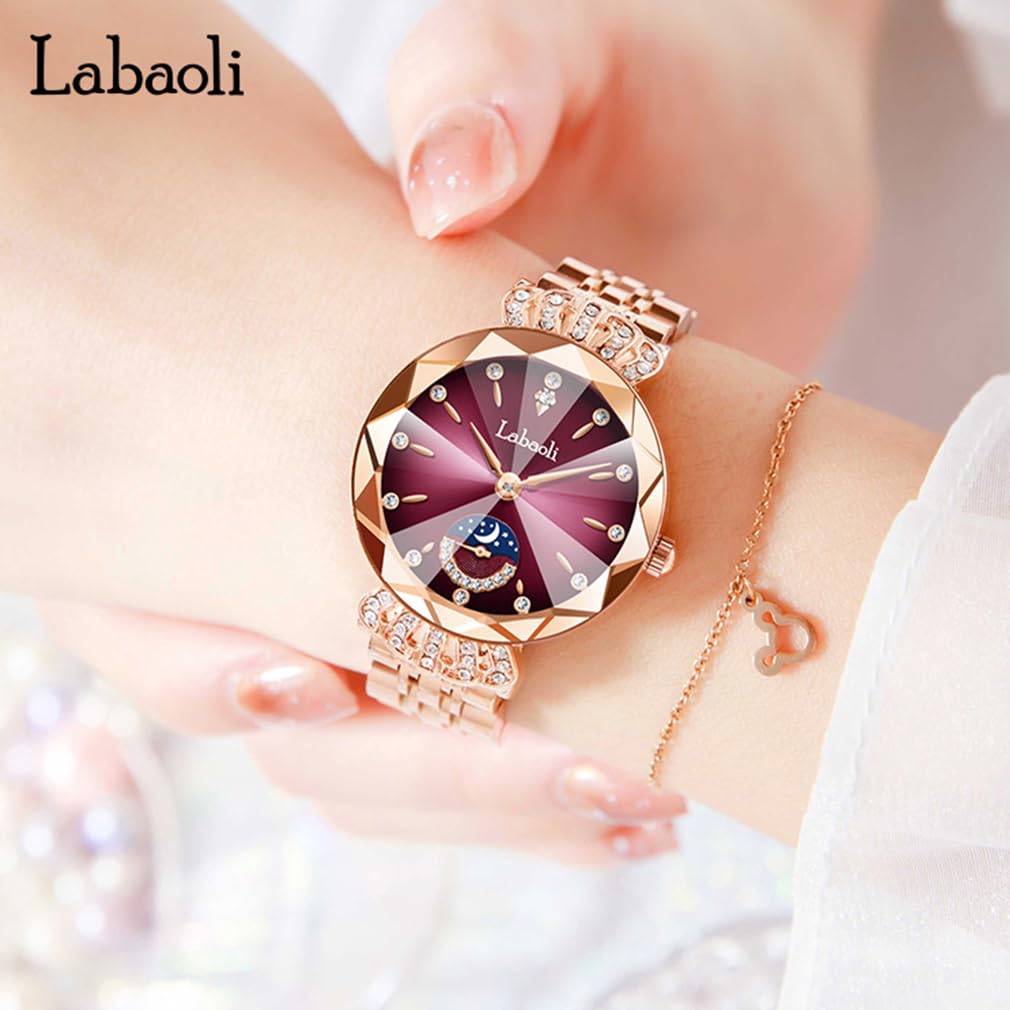 Labaoli Часы Женские Розовое Золото Кристалл Мода Милые: Изысканно оформленный и хорошо оформленный. Элегантный дизайн циферблата и изысканное часовое мастерство обеспечат вам идеальные ощущения при ношении.. Носите эти часы для работы, отдыха, ежедневного использования в помещении и на улице, они подойдут вам и вашим друзьям.. Элитные часы для женщин доставляются Amazon быстро и точно по указанному клиентом адресу.. Женские часы Crystal Rose Gold Blue Purple Cute Style Luxury High Quality: Функция аналогового отображения на циферблате часов станет идеальным подарком или личным аксессуаром на любой случай.. Водонепроницаемые женские часы из нержавеющей стали оснащены высококачественным антибликовым прочным покрытием циферблата, предотвращающим появление царапин и поломок.. Женские часы из нержавеющей стали, женские часы класса люкс, водонепроницаемые 3ATM до 30 метров, можно мыть вручную, выдерживать дождевую воду, водонепроницаемые для ежедневного использования, не подходят для подводного плавания. уведомление: Не нажимайте кнопки под водой.. Наручные часы женские хрустальные стильные
