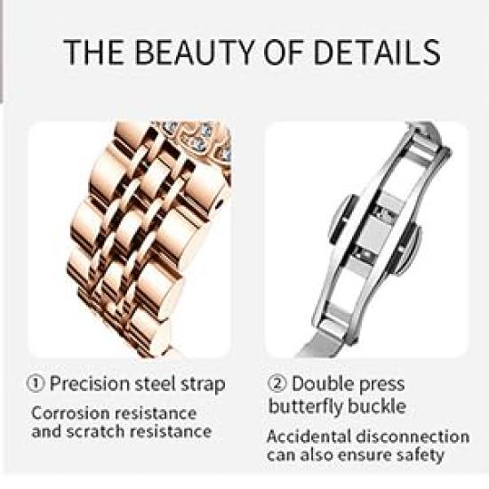Женские часы из нержавеющей стали, женские часы класса люкс, водонепроницаемые 3ATM до 30 метров, можно мыть вручную, выдерживать дождевую воду, водонепроницаемые для ежедневного использования, не подходят для подводного плавания. уведомление: Не нажимайте кнопки под водой.