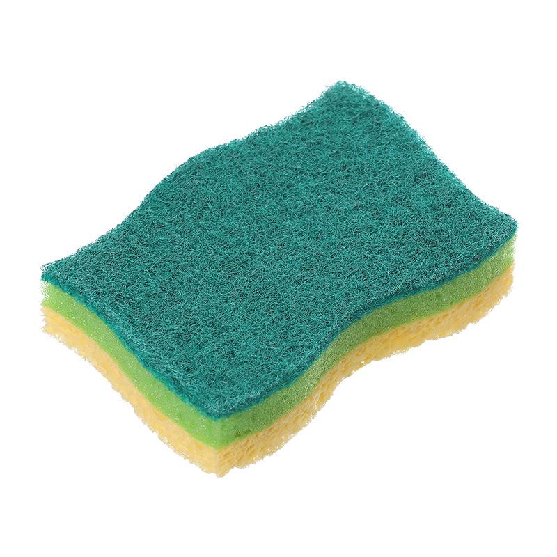 Нежирная, впитывающая губка из древесной целлюлозы и хлопка: Трехслойная волнистая чистящая губка для мытья посуды