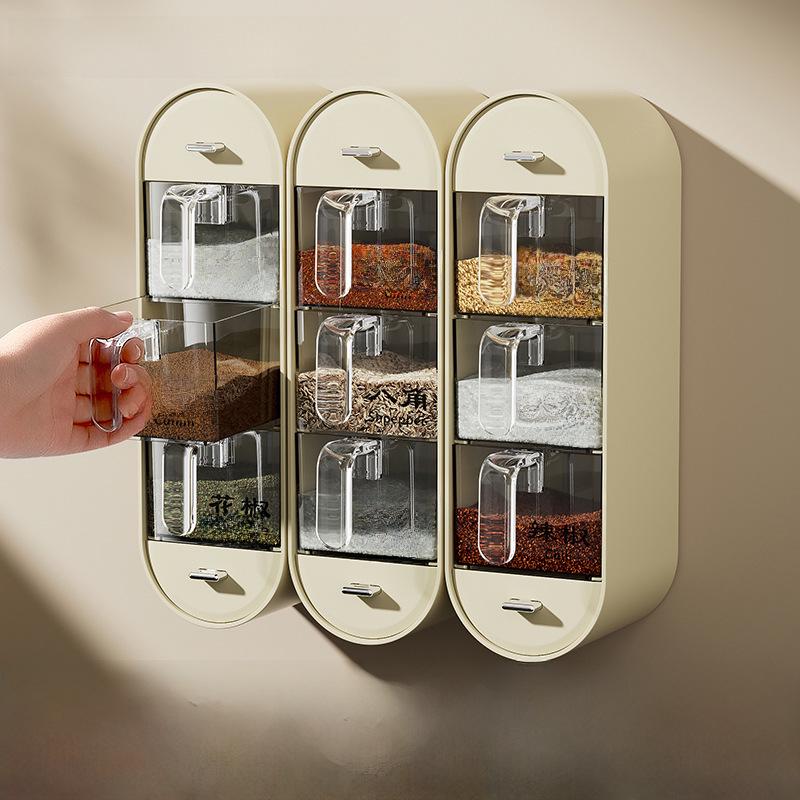 Настенный набор из пластиковых коробок для приправ без отверстий с ложкой, в комплект входят контейнеры для соли и глутамата натрия для кухни.
